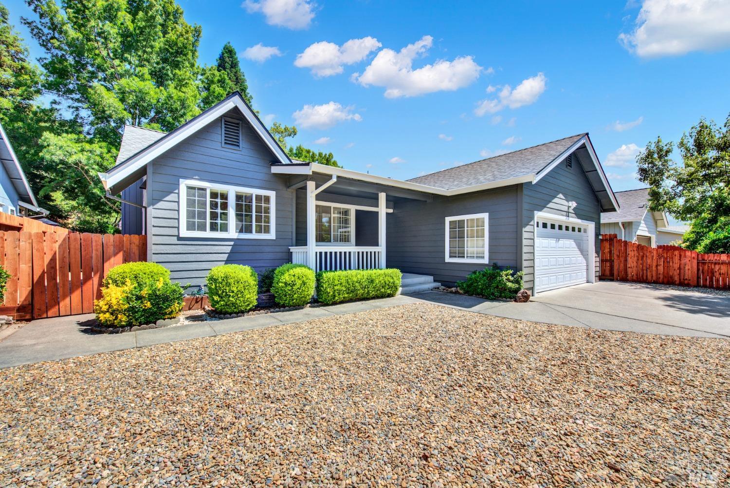 Clean as a whistle and ready for new ownership! Escape to the quaint charm of Calistoga and enjoy this single level home featuring brand new carpet and paint, simply designed floor plan with free standing gas fireplace in the living room, high ceilings, some Andersen windows, and convenient kitchen with informal dining area. The exterior is also complimented with new paint, new composition roof installed 2022 and gutters, solar panels that are owned and super easy backyard to keep maintenance low. If you are shopping for a Court location with views of the popular Table Rock mountains, be sure to add this great property to your list!