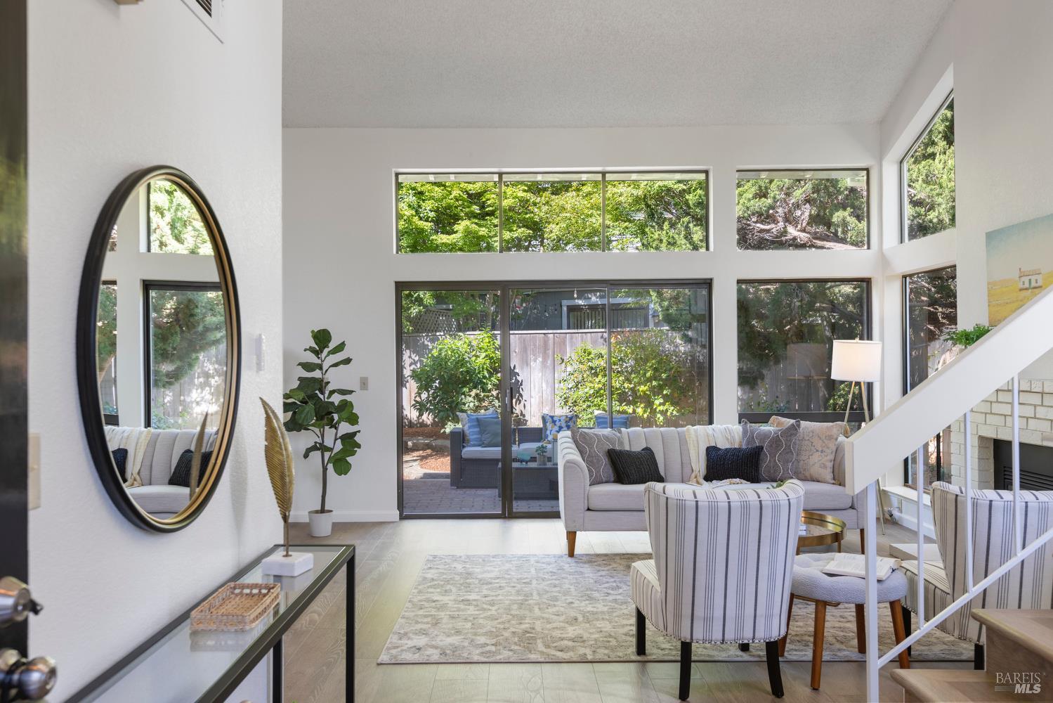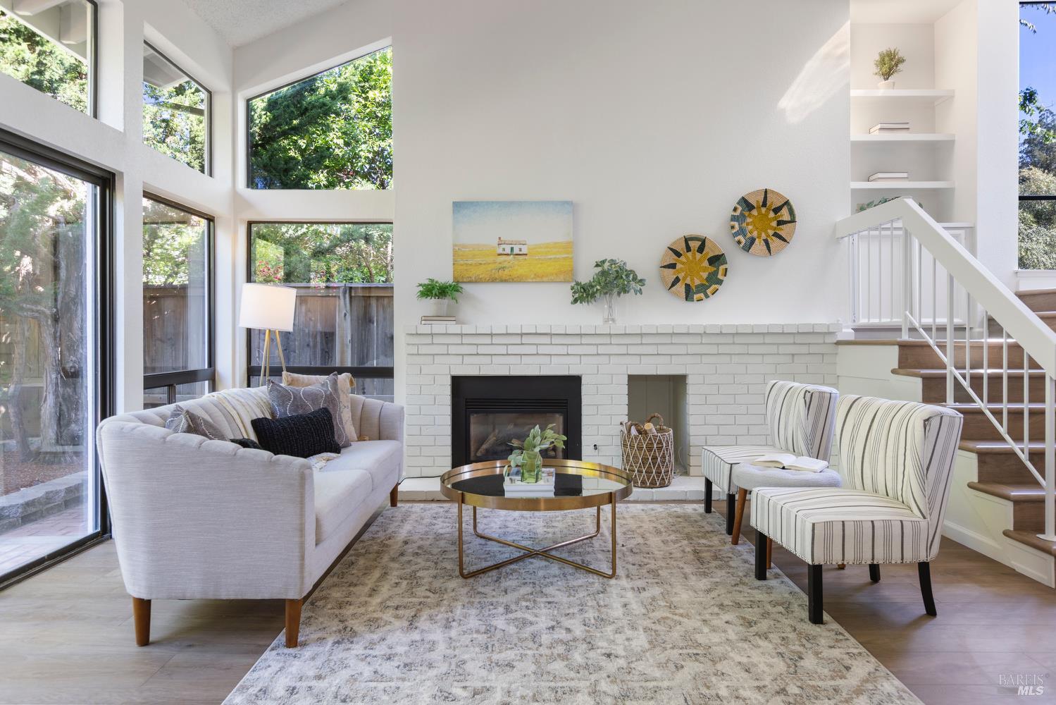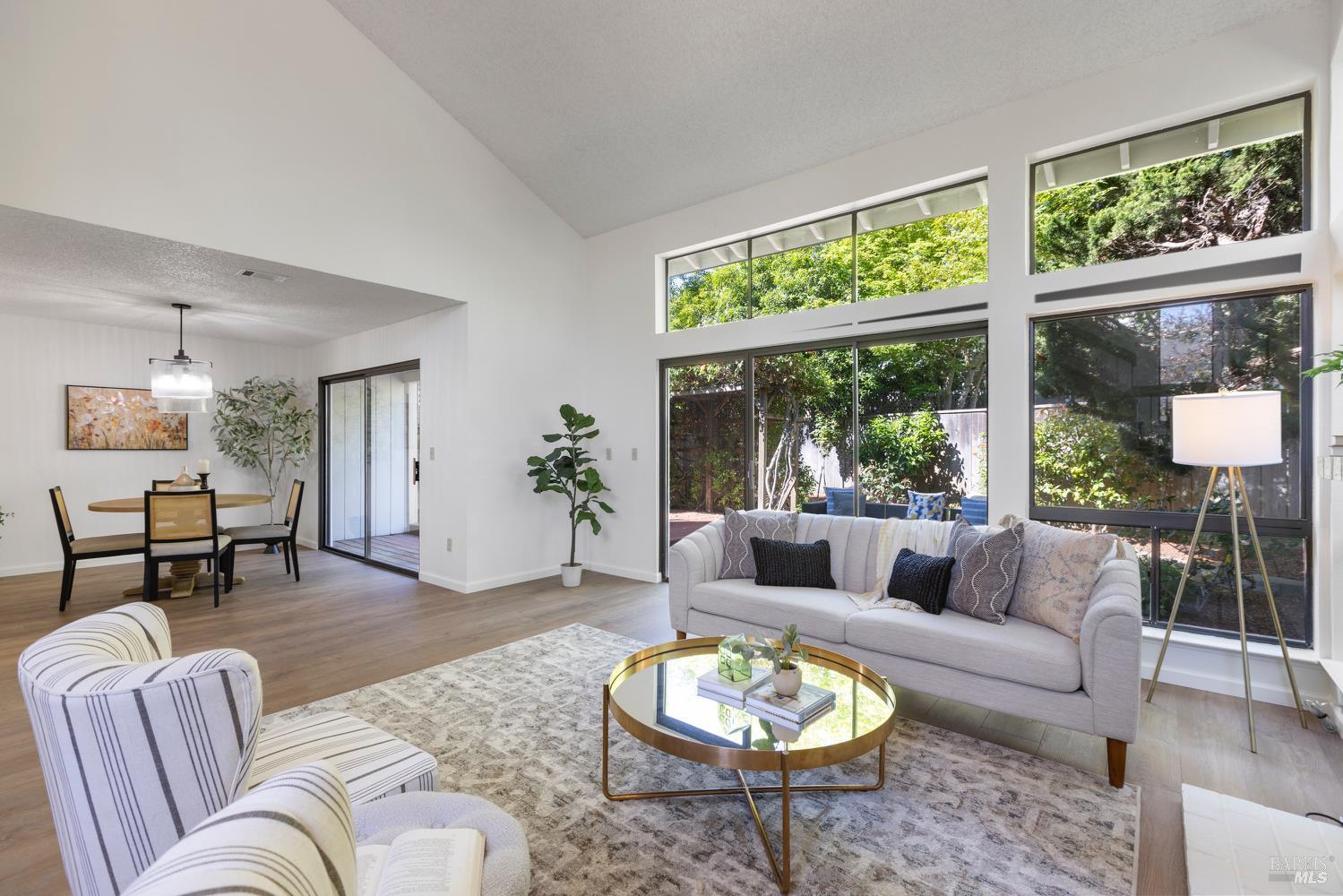 Open the door to a stunning, light-filled home framed by the backdrop of a beautiful and lush private backyard. Gated entry with a spacious wrap-around yard. Soaring ceilings and a dramatic wall of windows and sliding doors fill the home with natural light, creating a warm and inviting atmosphere. The gracious entryway leads to an open layout with new flooring and fresh paint throughout. Enjoy cozy evenings by the fireplace, casual meals in the breakfast nook, and seamless indoor-outdoor living with a dining area that opens to the beautifully landscaped backyard. A large skylight floods the space with sunlight. Double doors lead to an elegant primary suite featuring an outdoor balcony and a spacious bath with double sinks. The 2-car garage offers plenty of storage. Just five minutes from downtown Napa, this exceptional home offers the perfect blend of comfort, privacy, and convenience. Don't miss your chance to own a serene retreat in a convenient Wine Country location.