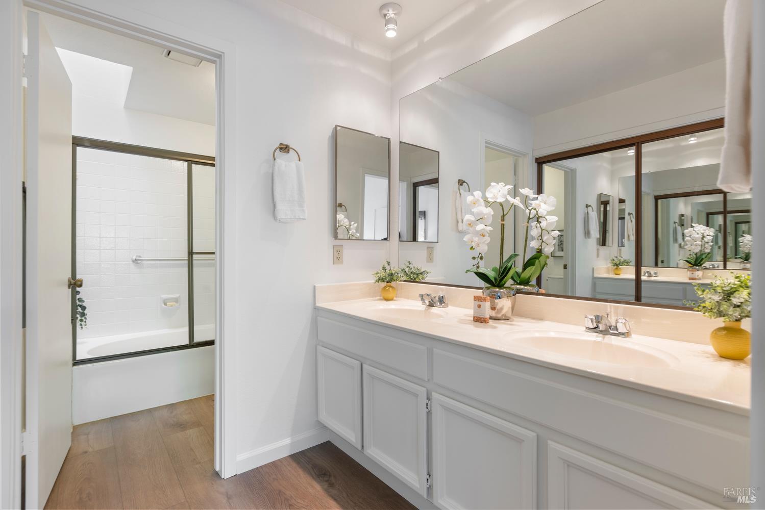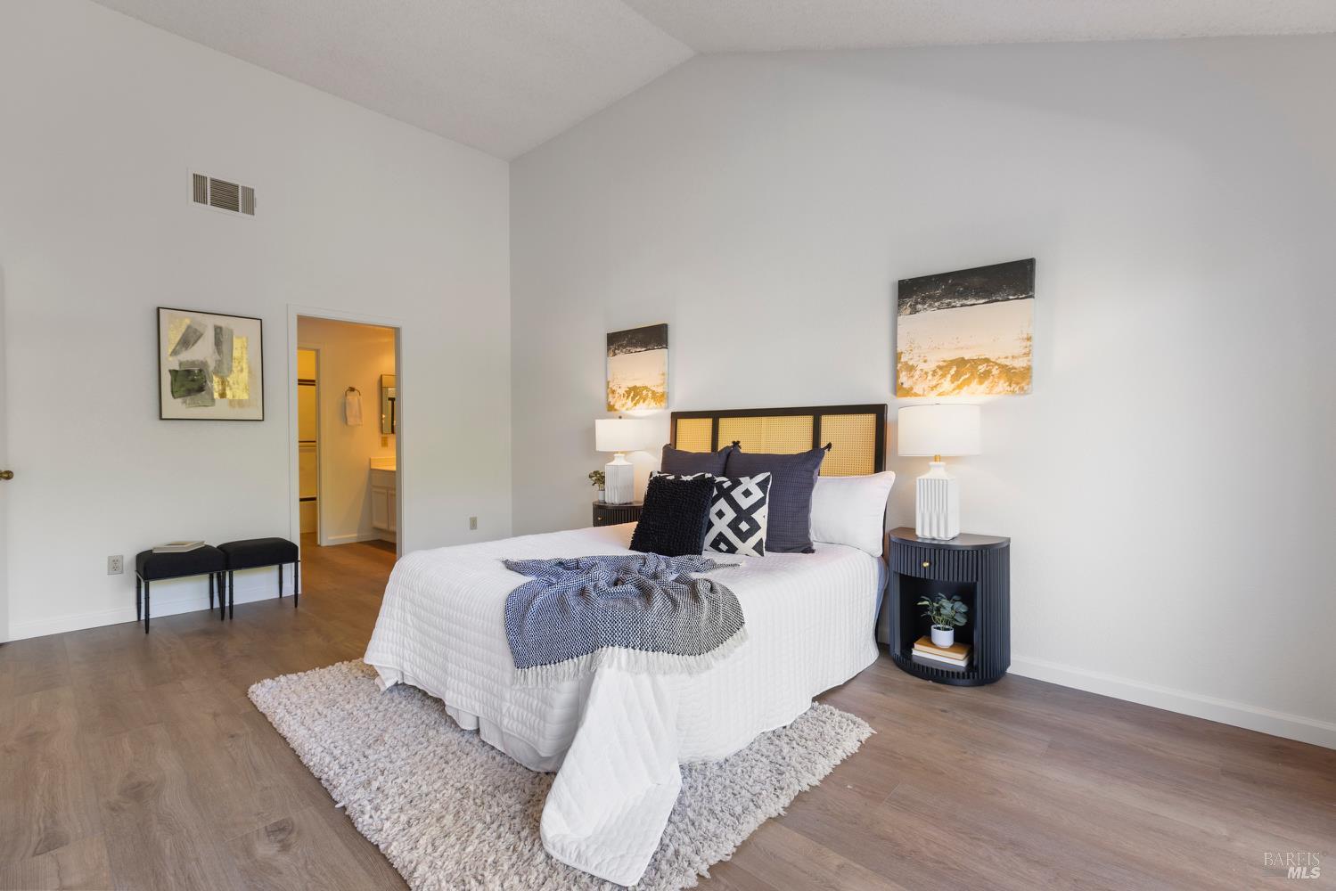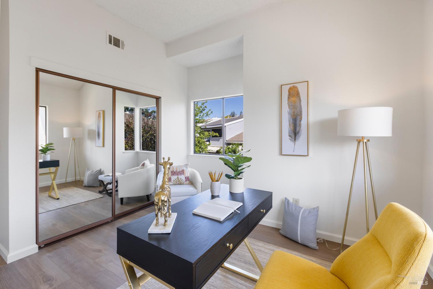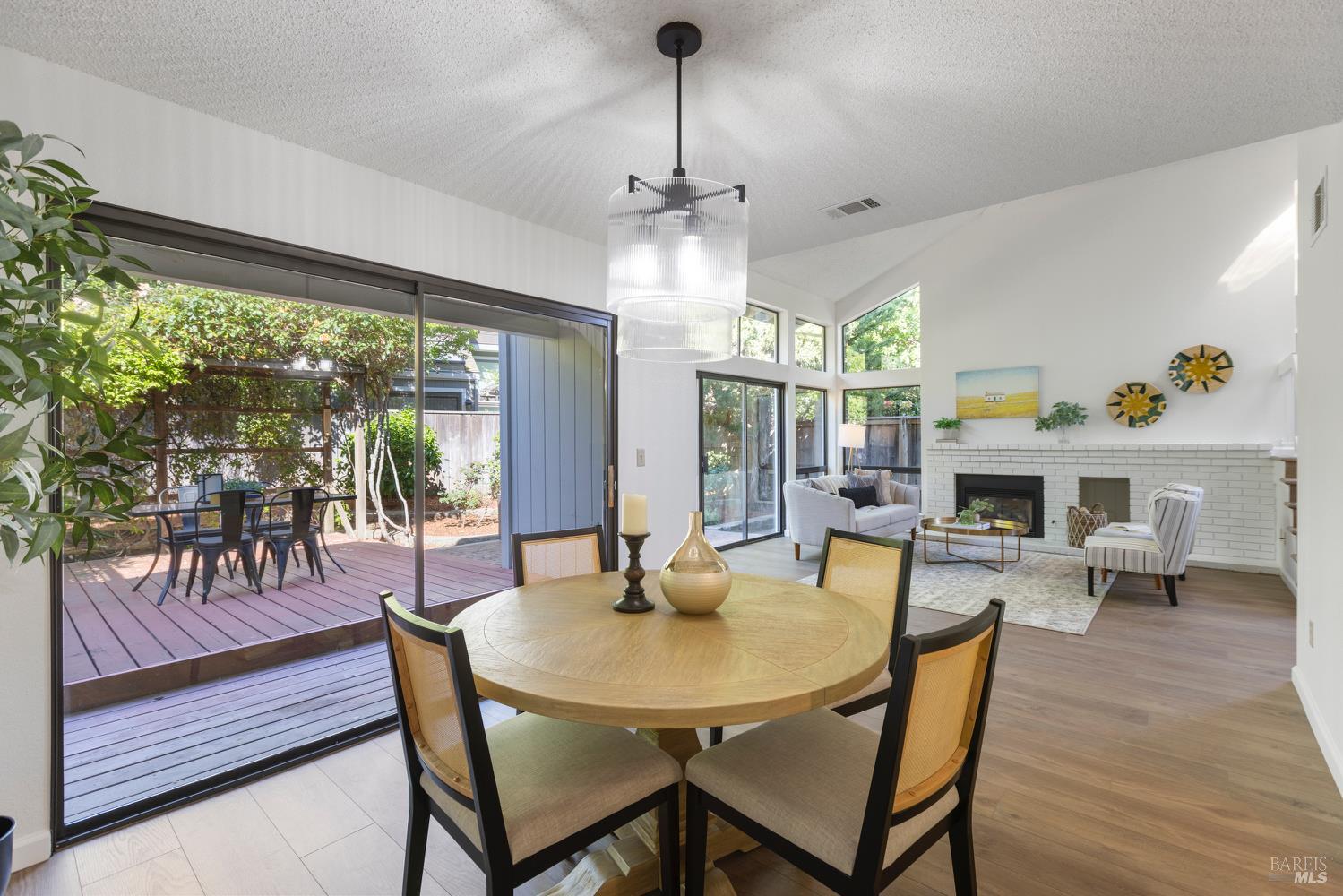 Open the door to a stunning, light-filled home framed by the backdrop of a beautiful and lush private backyard. Gated entry with a spacious wrap-around yard. Soaring ceilings and a dramatic wall of windows and sliding doors fill the home with natural light, creating a warm and inviting atmosphere. The gracious entryway leads to an open layout with new flooring and fresh paint throughout. Enjoy cozy evenings by the fireplace, casual meals in the breakfast nook, and seamless indoor-outdoor living with a dining area that opens to the beautifully landscaped backyard. A large skylight floods the space with sunlight. Double doors lead to an elegant primary suite featuring an outdoor balcony and a spacious bath with double sinks. The 2-car garage offers plenty of storage. Just five minutes from downtown Napa, this exceptional home offers the perfect blend of comfort, privacy, and convenience. Don't miss your chance to own a serene retreat in a convenient Wine Country location.