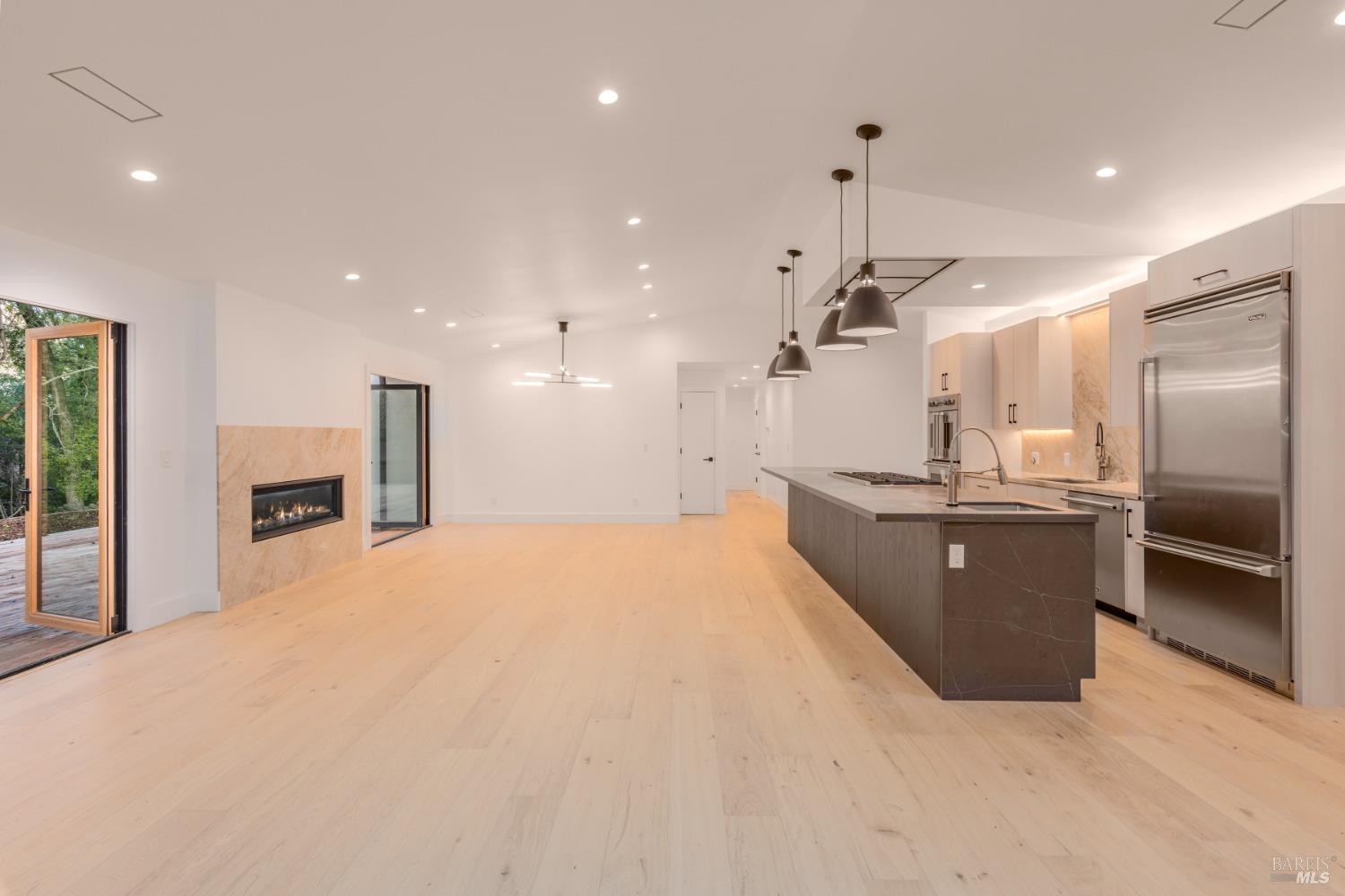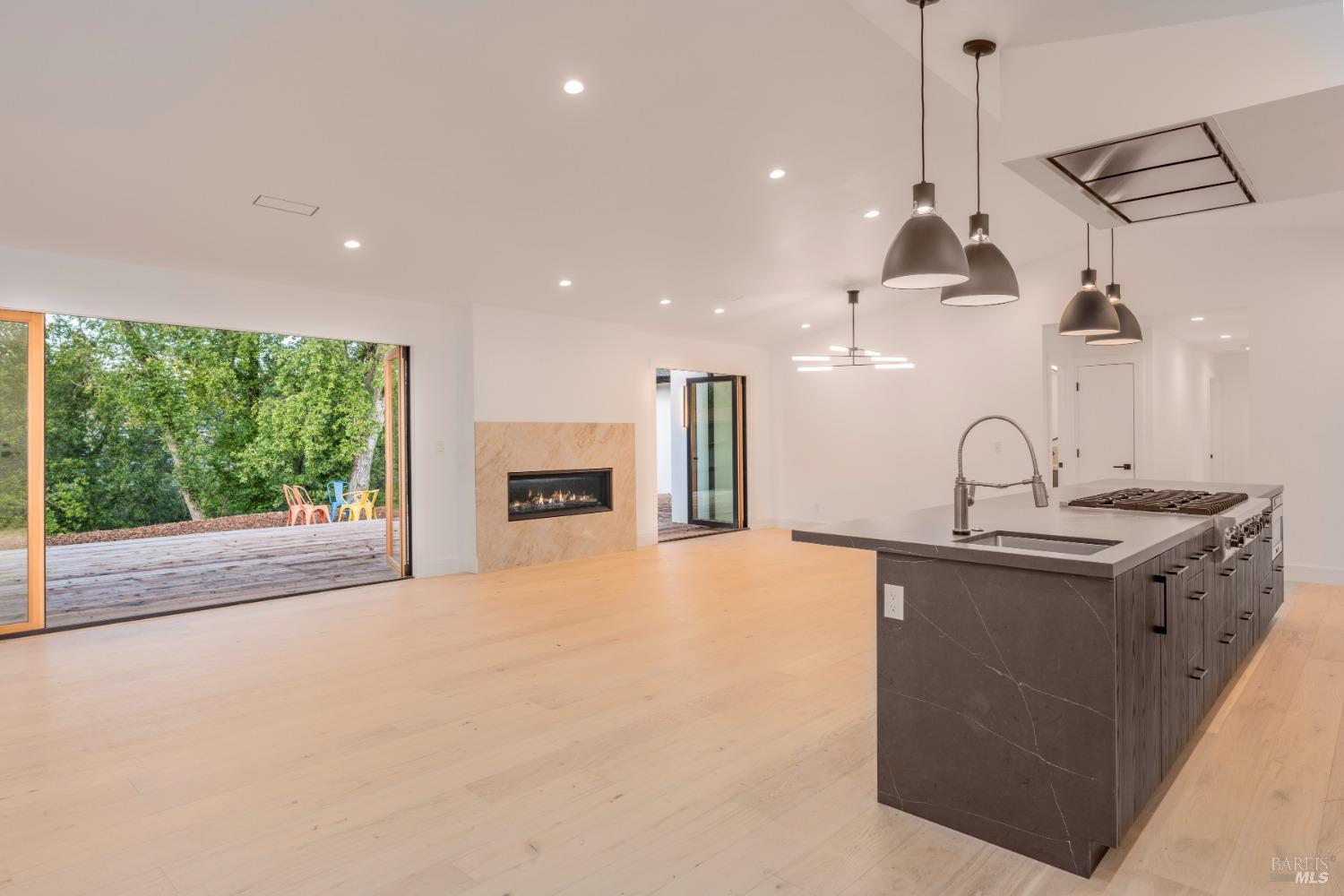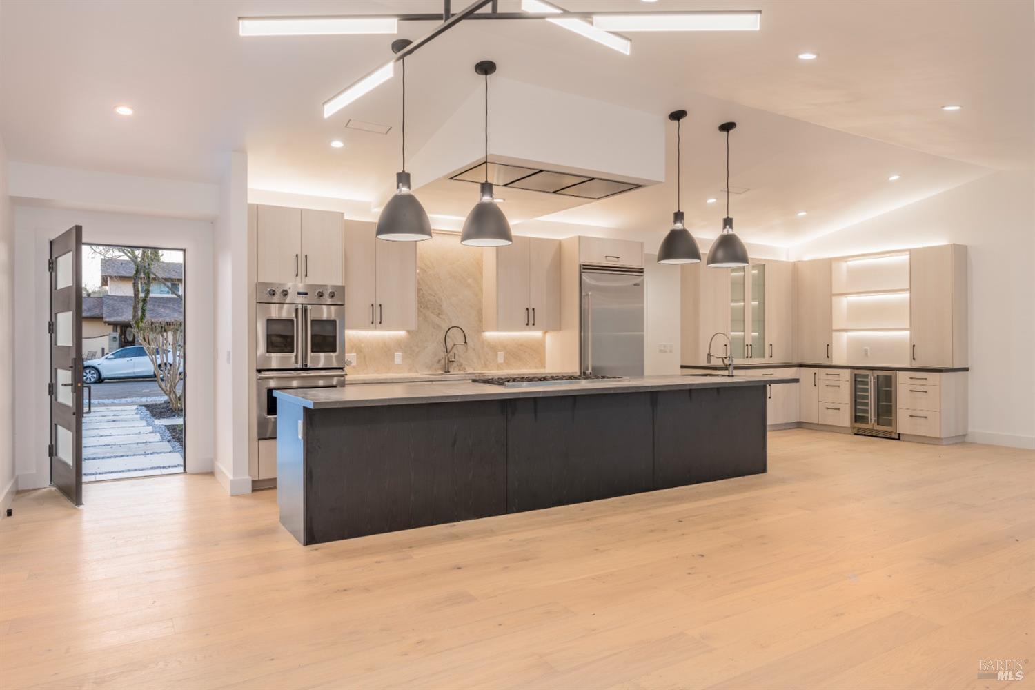 Boasting three bedrooms and three full bathrooms, including two luxurious ensuite bedrooms, the home exudes elegance and functionality. Throughout the residence, French Oak flooring graces the floors, complemented by solid core wood doors. The kitchen is a culinary haven, featuring an 8-burner Viking gas cooktop, paired with two Viking double ovens, one equipped with French doorsan epitome of a chef's paradise. A gas fireplace serves as the focal point of the entertainment space. La Cantina folding doors seamlessly merge indoor and outdoor living, offering a Napa Valley-esque experience. Nestled against a tranquil creek, the property exudes serenity and seclusion. Custom cabinetry adorns every corner, while the primary bathroom boasts a standalone soaking tub, a walk-in shower, and double sinks. A custom wine cellar with its own cooling system awaits the connoisseur. A generously sized walk-in pantry complements the gourmet kitchen. Indoor dedicated laundry room with cabinets, counter space and sink. Exiting towards the garage, a cooled and filtered water station awaits. The foundation is fortified with steel push piers, reaching an average depth of 40 feet to bedrock, ensuring stability. Don't miss the opportunity to own this exceptional estate.