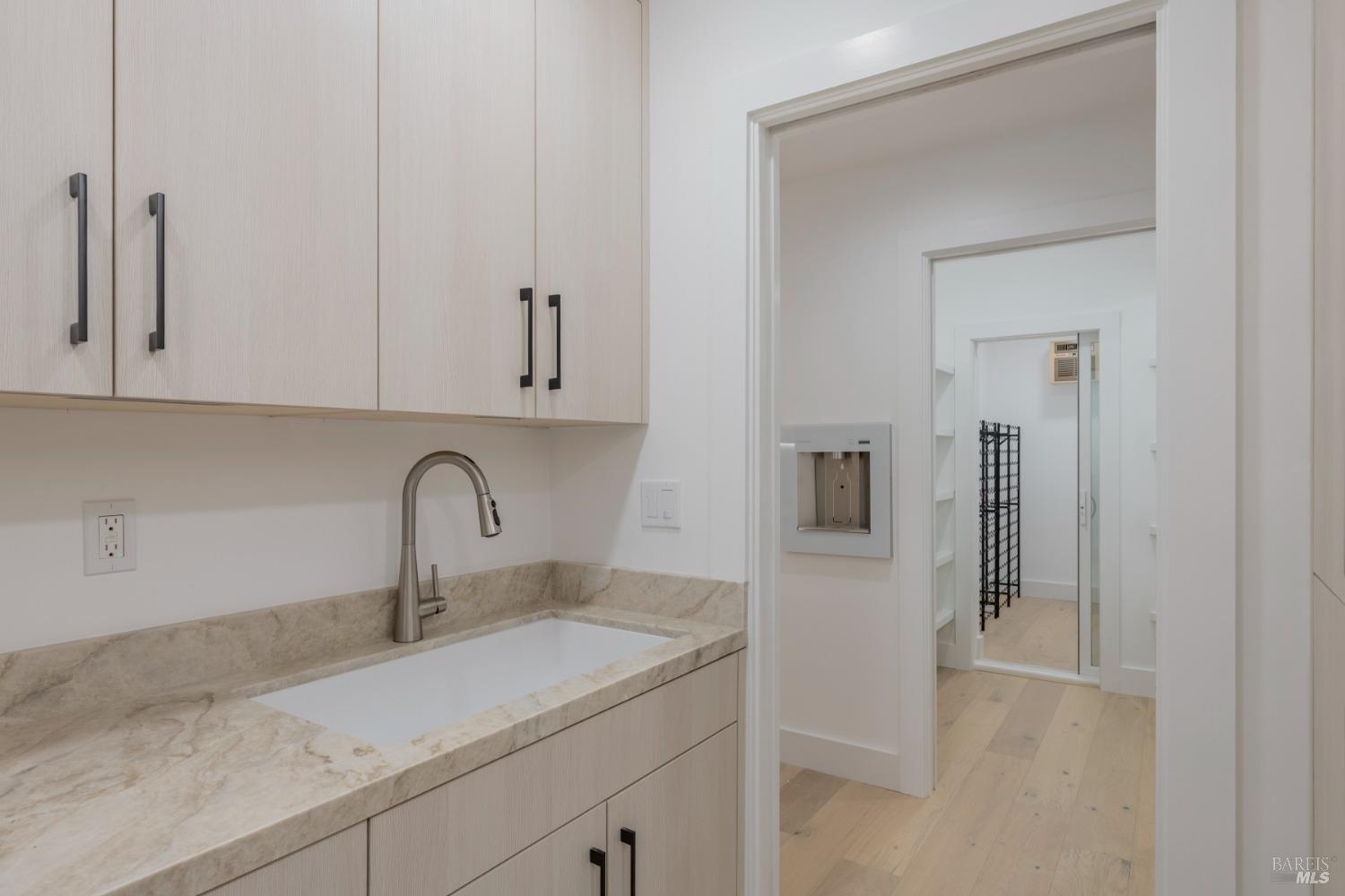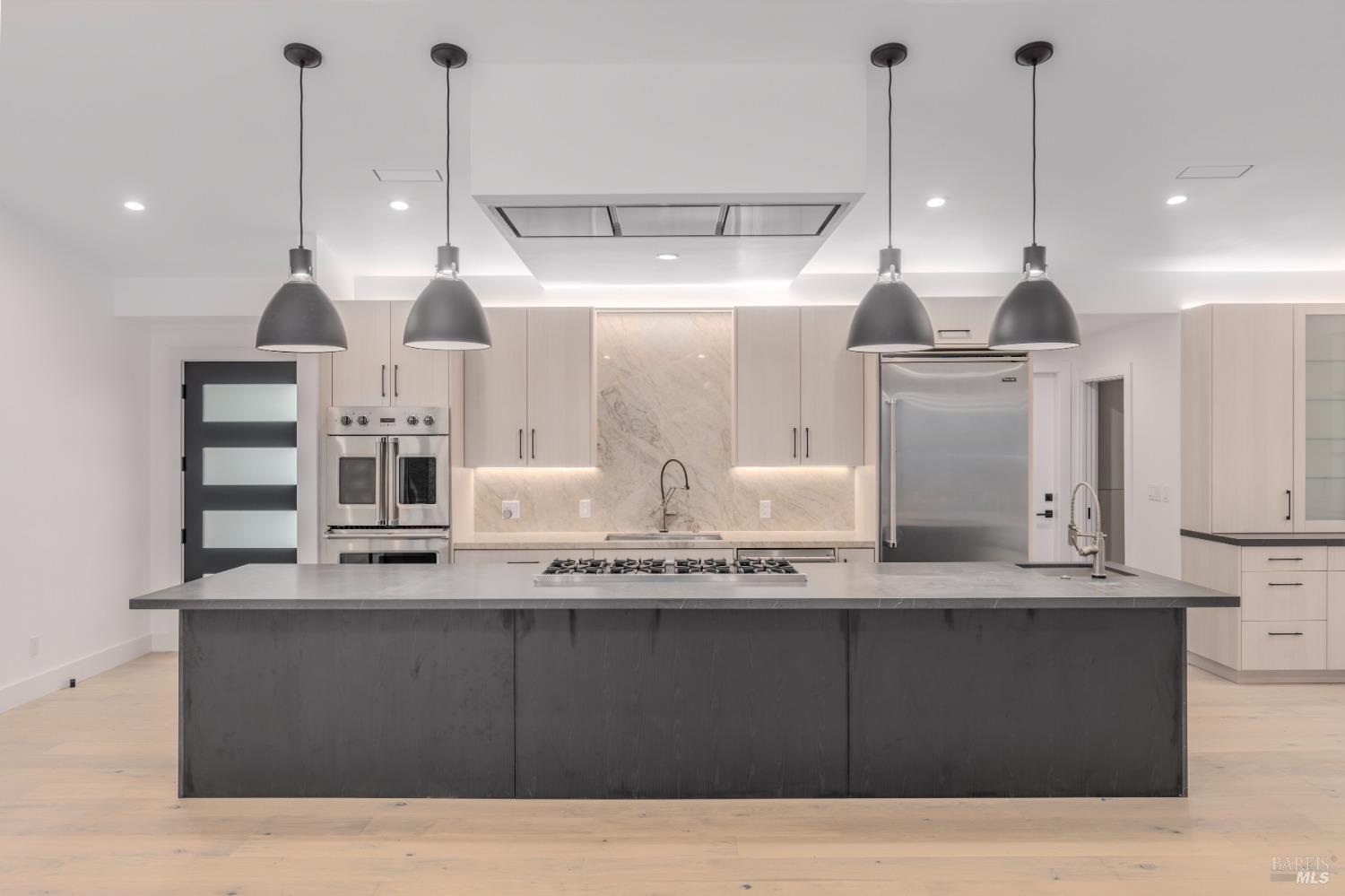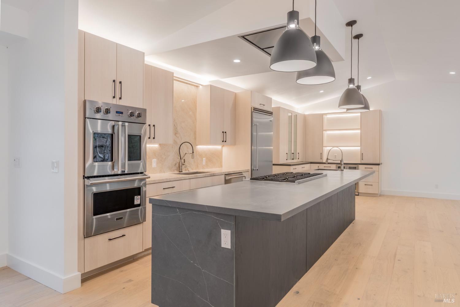 Boasting three bedrooms and three full bathrooms, including two luxurious ensuite bedrooms, the home exudes elegance and functionality. Throughout the residence, French Oak flooring graces the floors, complemented by solid core wood doors. The kitchen is a culinary haven, featuring an 8-burner Viking gas cooktop, paired with two Viking double ovens, one equipped with French doorsan epitome of a chef's paradise. A gas fireplace serves as the focal point of the entertainment space. La Cantina folding doors seamlessly merge indoor and outdoor living, offering a Napa Valley-esque experience. Nestled against a tranquil creek, the property exudes serenity and seclusion. Custom cabinetry adorns every corner, while the primary bathroom boasts a standalone soaking tub, a walk-in shower, and double sinks. A custom wine cellar with its own cooling system awaits the connoisseur. A generously sized walk-in pantry complements the gourmet kitchen. Indoor dedicated laundry room with cabinets, counter space and sink. Exiting towards the garage, a cooled and filtered water station awaits. The foundation is fortified with steel push piers, reaching an average depth of 40 feet to bedrock, ensuring stability. Don't miss the opportunity to own this exceptional estate.