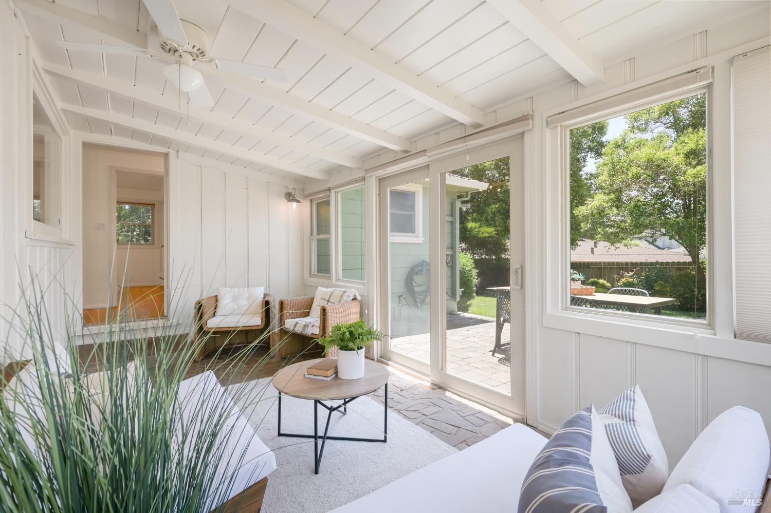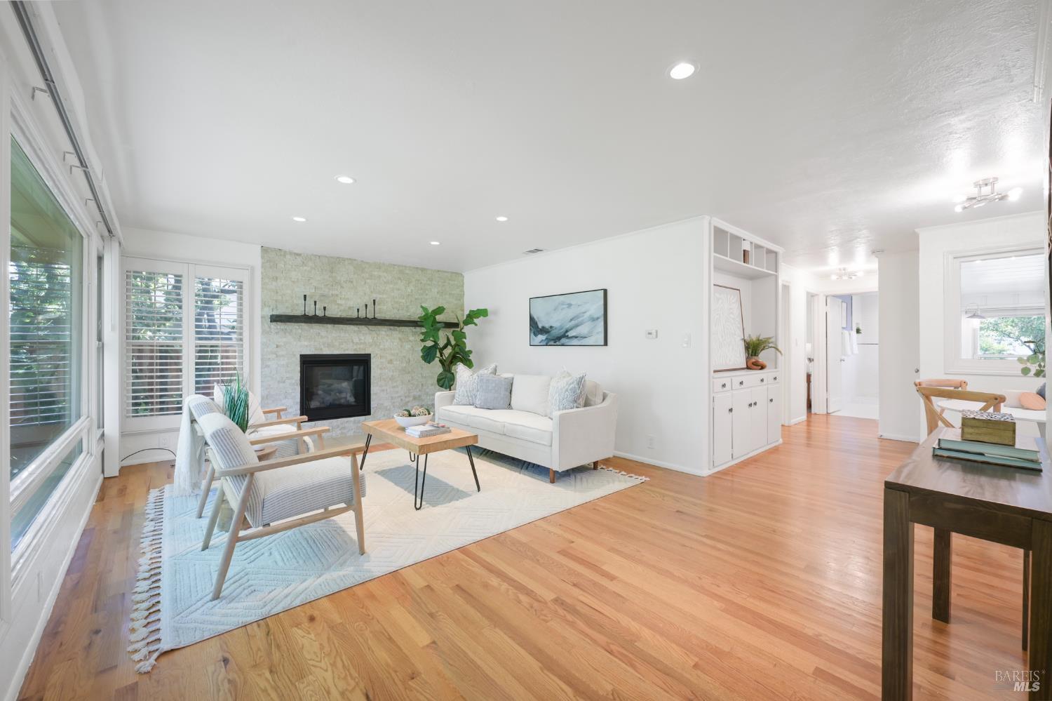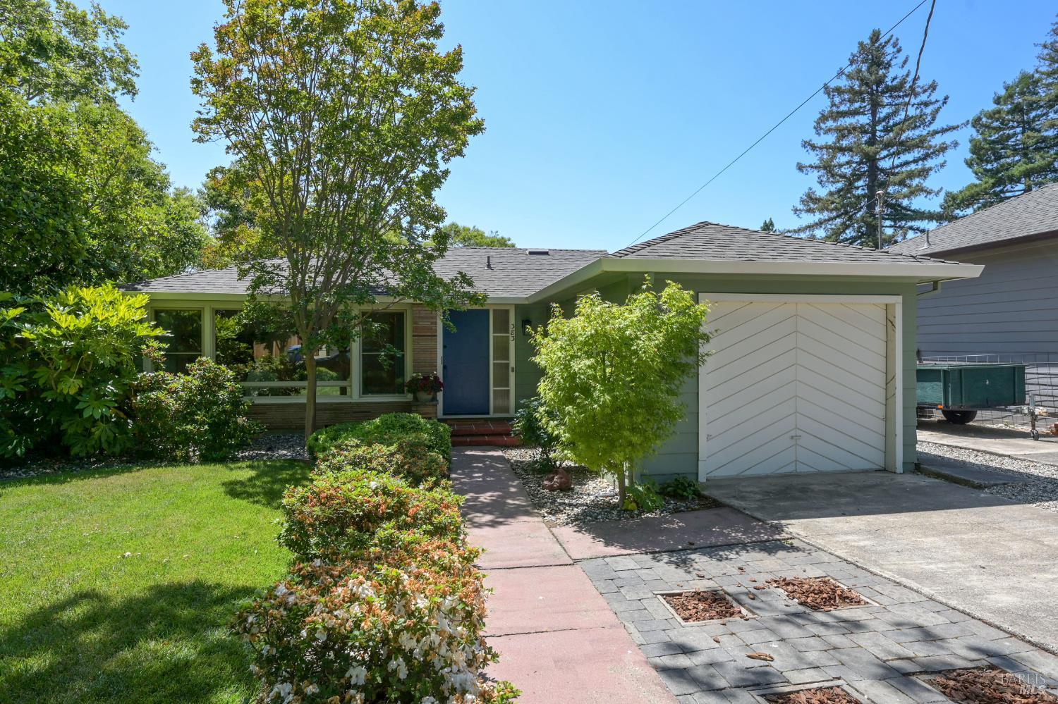 Discover the perfect blend of charm and convenience at 383 South Hartson Street. Ideally located just minutes from downtown Napa, this well-maintained home offers easy access to renowned wineries, vibrant dining, and local attractions. Built in 1951, this freshly painted 2-bedroom, 1.5-bathroom bungalow features hardwood flooring throughout, a cozy gas fireplace, and an attached single-car garage for convenient parking and storage. A charming sunroom adds to the vintage character, creating a perfect space to relax. Beautifully landscaped with mature greenery, the property offers privacy and curb appeal, while the spacious backyard is ideal for outdoor entertaining, gardening, or simply enjoying California's sunshine. This lovely home combines an unbeatable location with charming features and an excellent opportunity to enjoy Napa living at its finest.