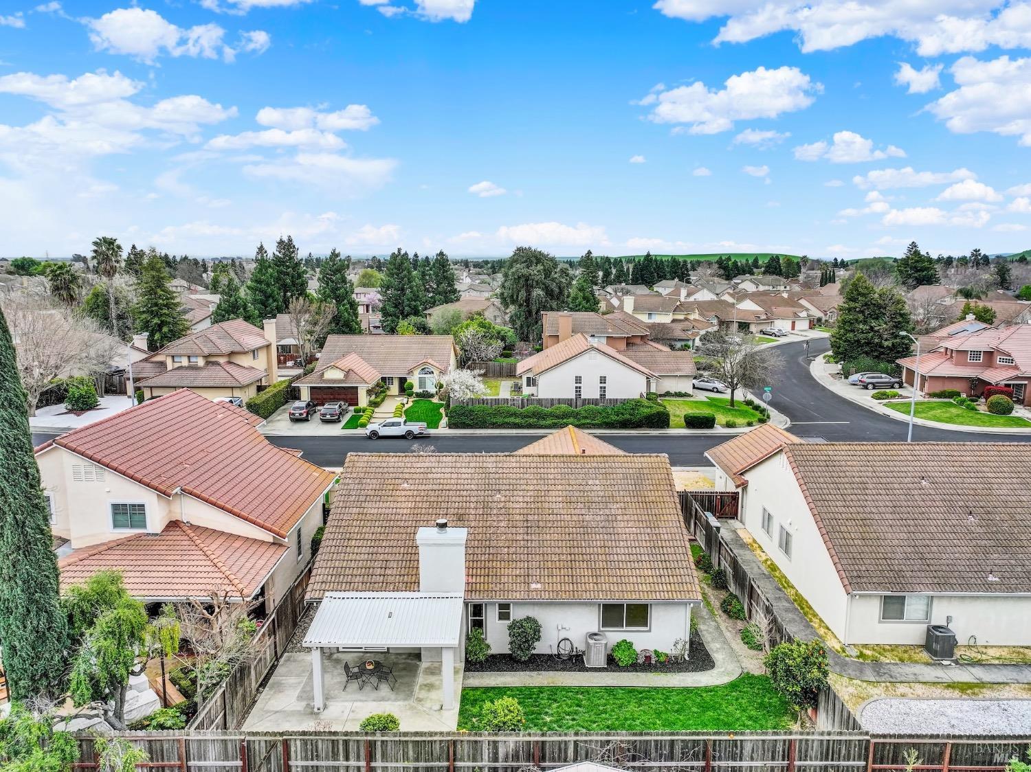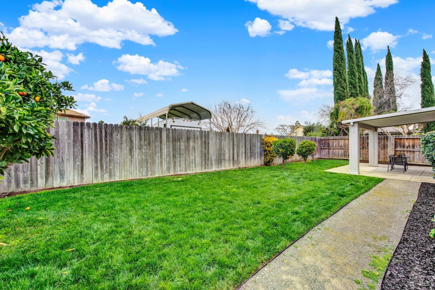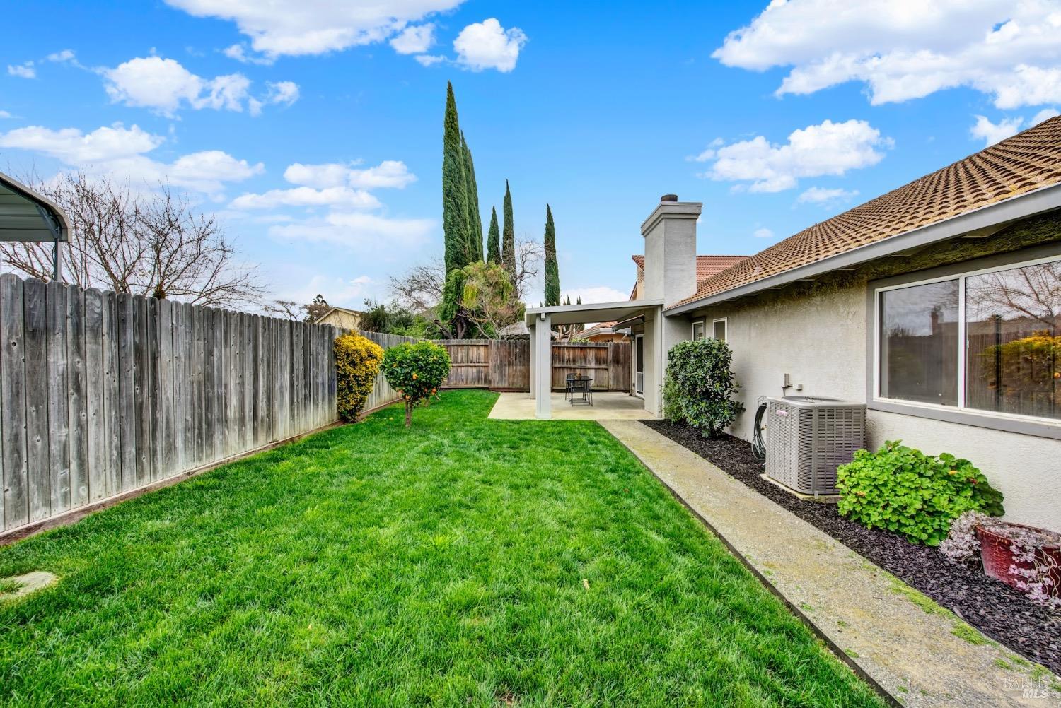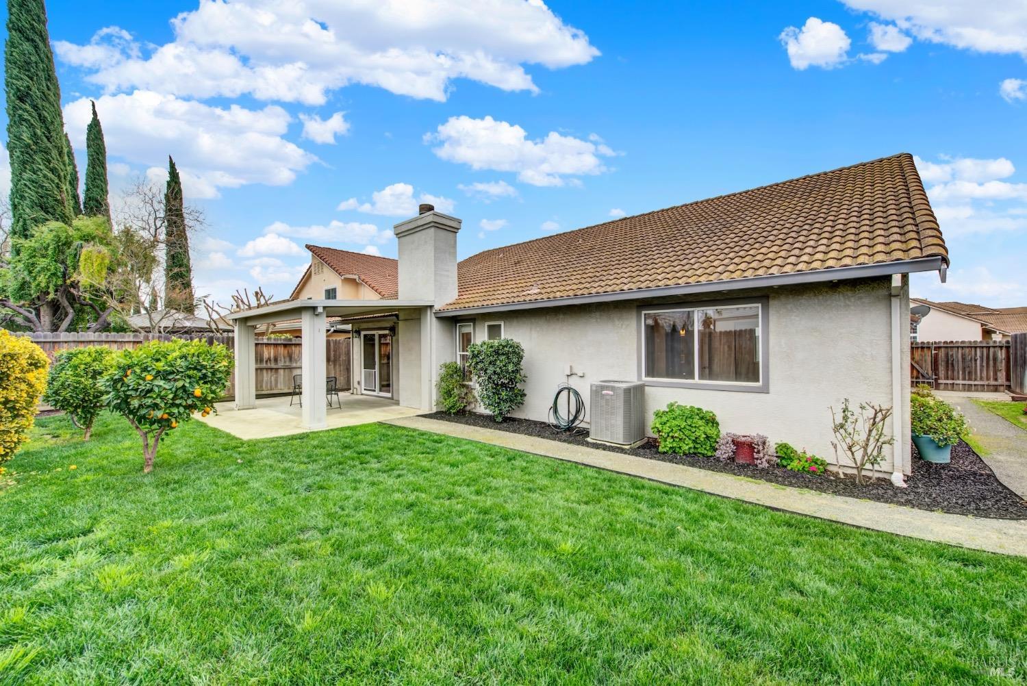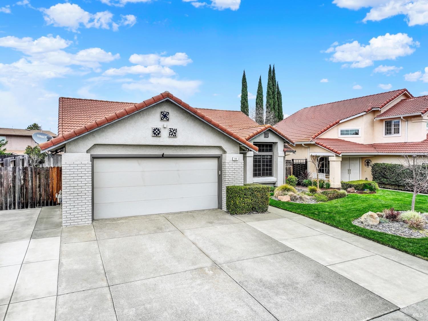 This move-in-ready 4-bed, 2-bath single story home in Vacaville's Foxwood subdivision offers 1,791 sq. ft. of living space, with soaring ceilings and bright natural light. Features include a spacious kitchen with granite countertops, recessed lighting, and new carpet in the bedrooms. Recent updates include a new hot water heater, HVAC system (5 yr), garage door & opener (2 yr), and exterior paint (6 yr). Enjoy easy-care laminate flooring in main living areas, a tile roof, and upgraded front and rear landscaping with sprinklers. The primary suite boasts a vaulted ceiling, double closets, plus an extra-large shower and granite counters in the updated primary bathroom. The garage comes with cabinetry and a workbench. The driveway is extra wide for lots of parking options. Located near parks, schools, and with easy access to I-80, this home is in the highly-rated Travis Unified School District and just 15 minutes from Travis AFB. A must-see! Pest & Roof Clearance repairs will be completed 3/1. 4th bedroom has double doors but no closet. It also makes for a great office or 3rd living area. Fruit trees in backyard for homemade lemonade!