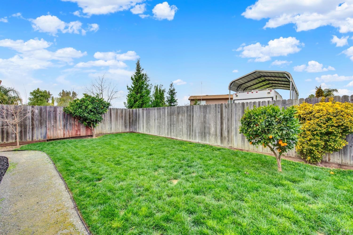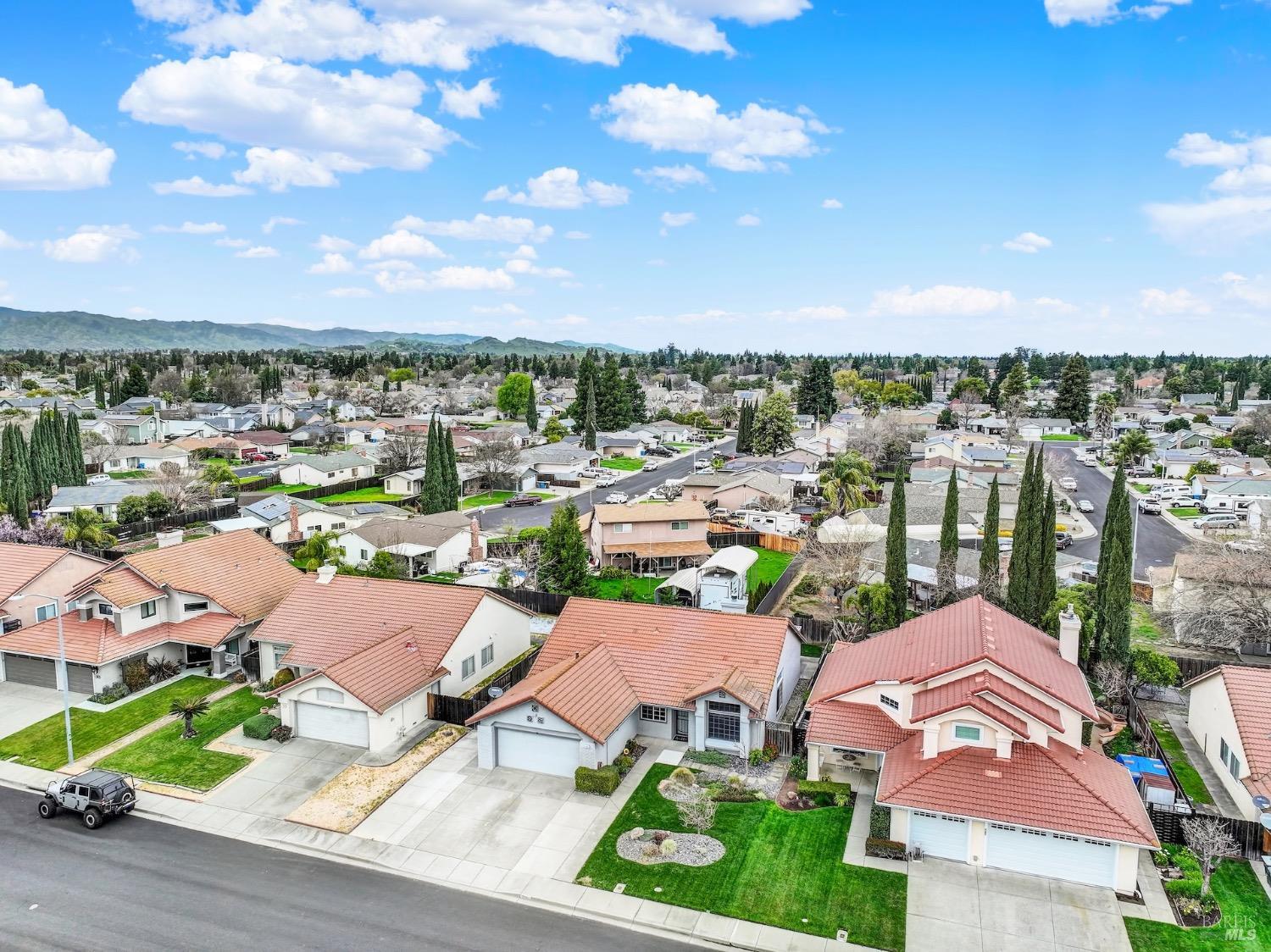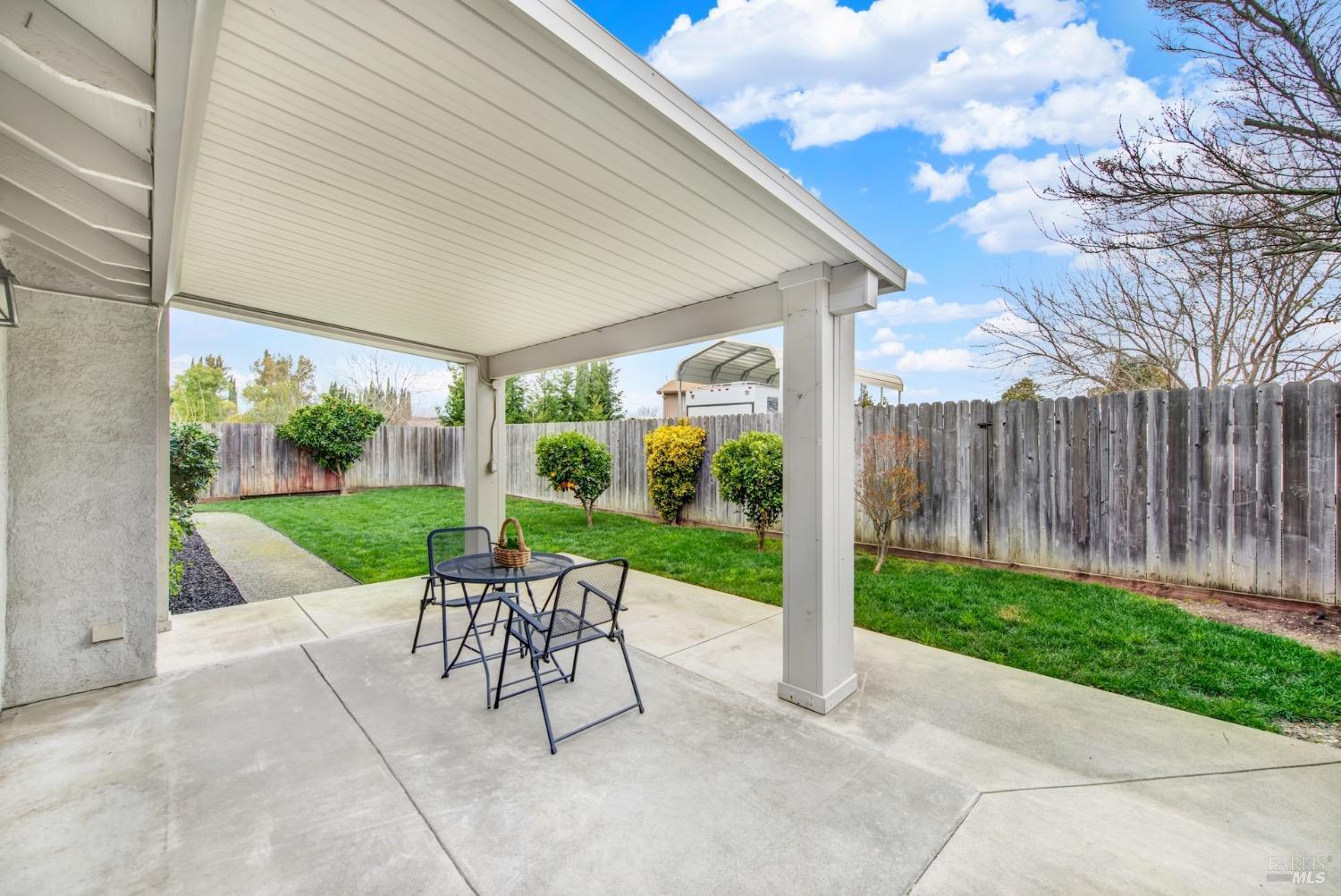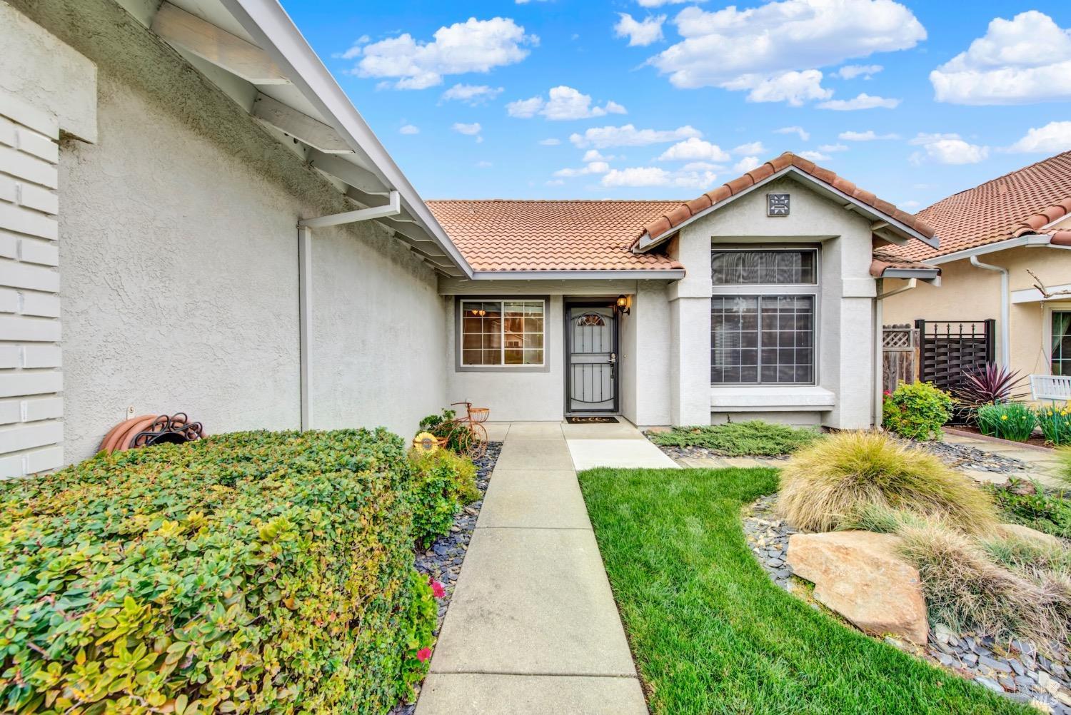 This move-in-ready 4-bed, 2-bath single story home in Vacaville's Foxwood subdivision offers 1,791 sq. ft. of living space, with soaring ceilings and bright natural light. Features include a spacious kitchen with granite countertops, recessed lighting, and new carpet in the bedrooms. Recent updates include a new hot water heater, HVAC system (5 yr), garage door & opener (2 yr), and exterior paint (6 yr). Enjoy easy-care laminate flooring in main living areas, a tile roof, and upgraded front and rear landscaping with sprinklers. The primary suite boasts a vaulted ceiling, double closets, plus an extra-large shower and granite counters in the updated primary bathroom. The garage comes with cabinetry and a workbench. The driveway is extra wide for lots of parking options. Located near parks, schools, and with easy access to I-80, this home is in the highly-rated Travis Unified School District and just 15 minutes from Travis AFB. A must-see! Pest & Roof Clearance repairs will be completed 3/1. 4th bedroom has double doors but no closet. It also makes for a great office or 3rd living area. Fruit trees in backyard for homemade lemonade!