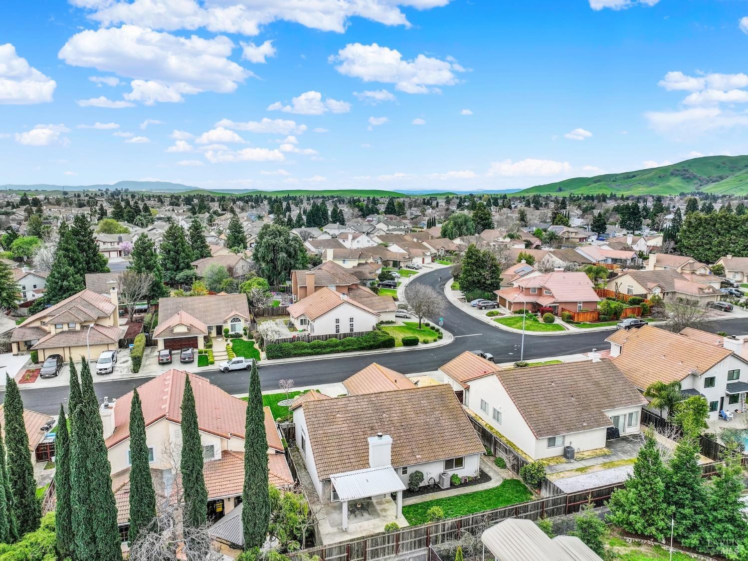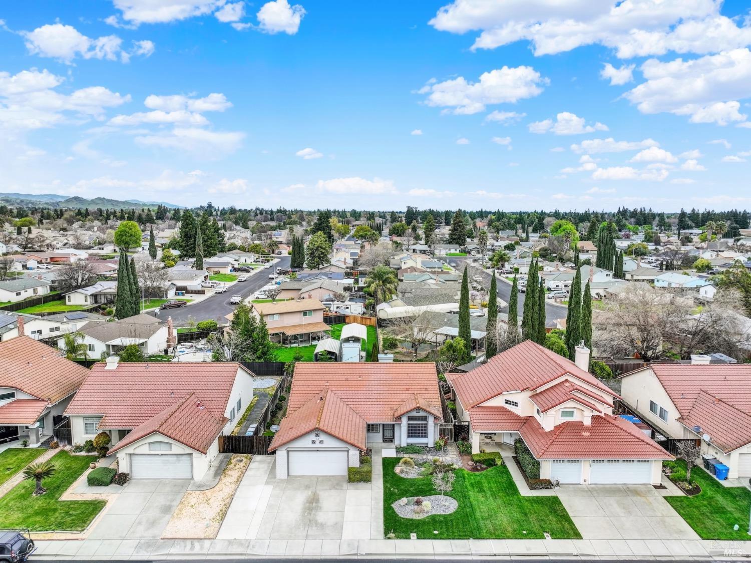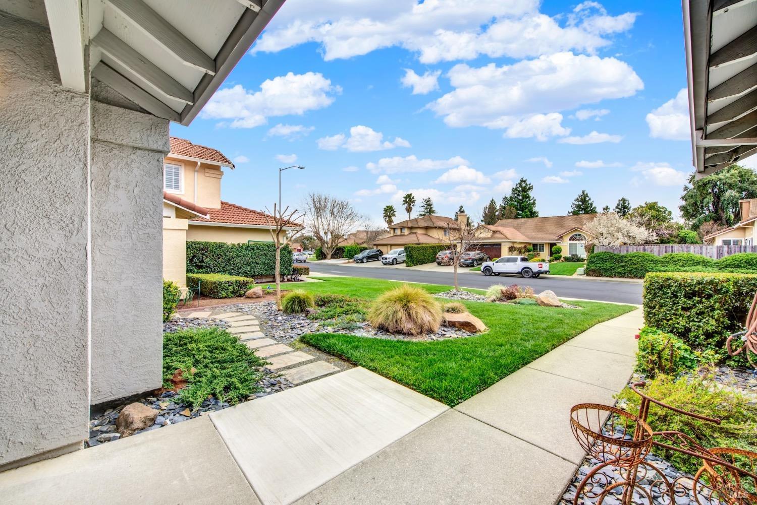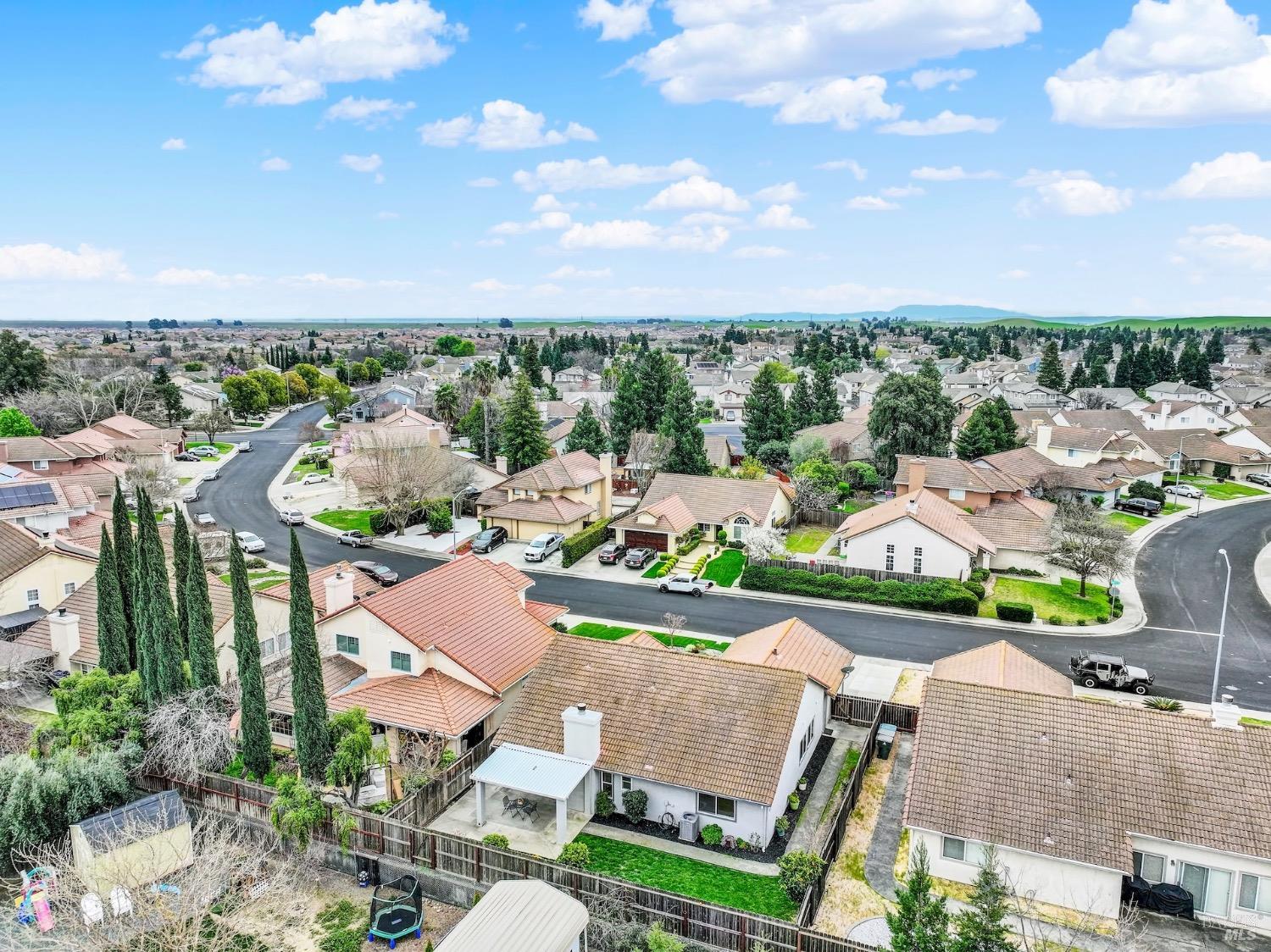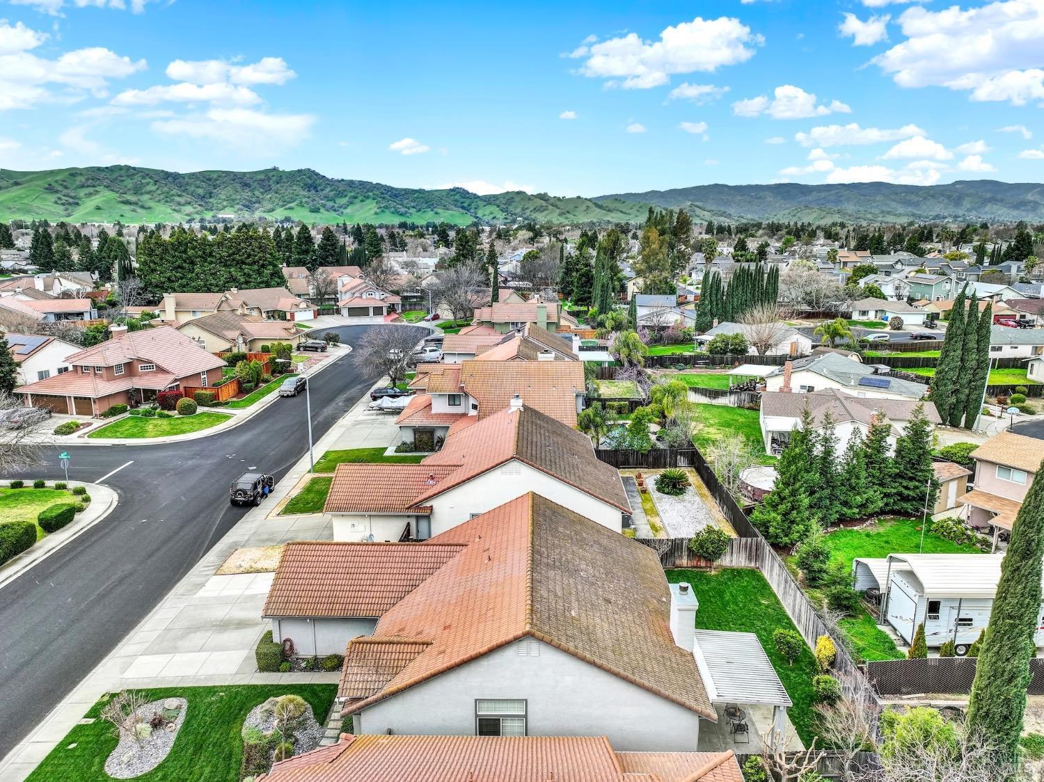 This move-in-ready 4-bed, 2-bath single story home in Vacaville's Foxwood subdivision offers 1,791 sq. ft. of living space, with soaring ceilings and bright natural light. Features include a spacious kitchen with granite countertops, recessed lighting, and new carpet in the bedrooms. Recent updates include a new hot water heater, HVAC system (5 yr), garage door & opener (2 yr), and exterior paint (6 yr). Enjoy easy-care laminate flooring in main living areas, a tile roof, and upgraded front and rear landscaping with sprinklers. The primary suite boasts a vaulted ceiling, double closets, plus an extra-large shower and granite counters in the updated primary bathroom. The garage comes with cabinetry and a workbench. The driveway is extra wide for lots of parking options. Located near parks, schools, and with easy access to I-80, this home is in the highly-rated Travis Unified School District and just 15 minutes from Travis AFB. A must-see! Pest & Roof Clearance repairs will be completed 3/1. 4th bedroom has double doors but no closet. It also makes for a great office or 3rd living area. Fruit trees in backyard for homemade lemonade!