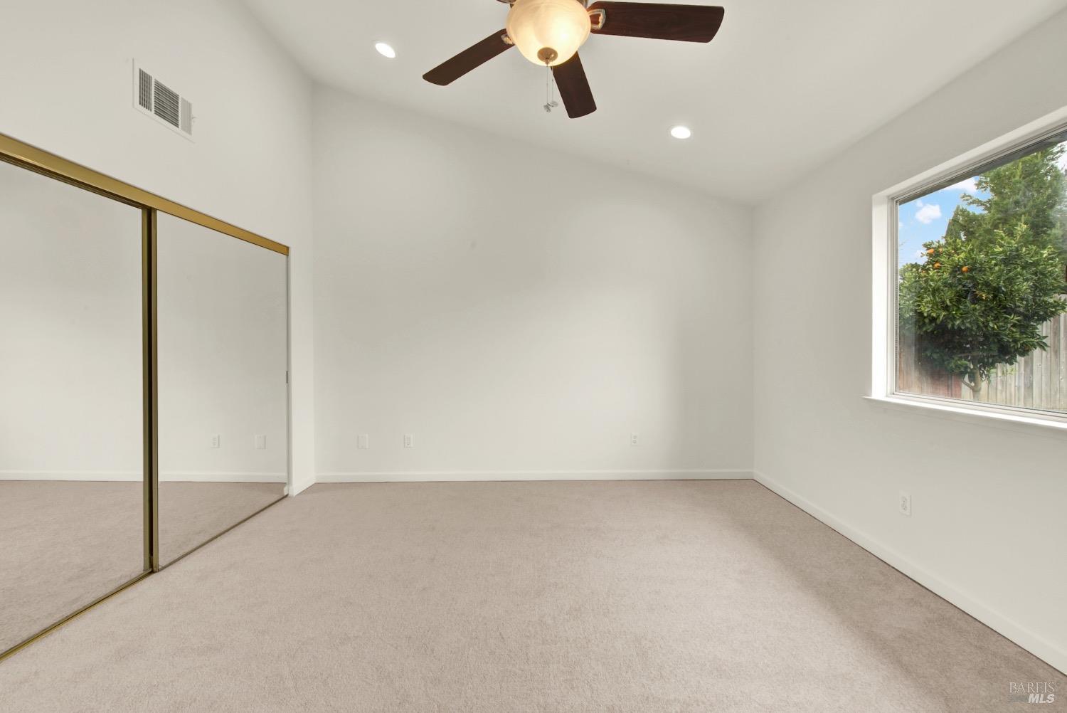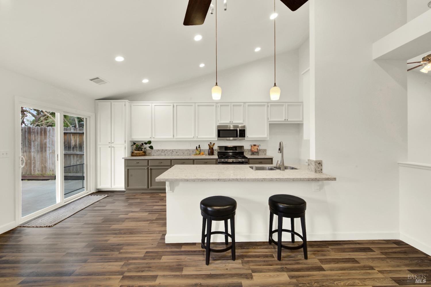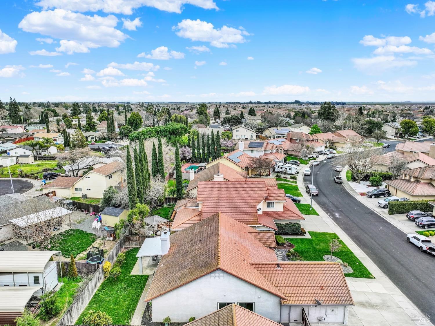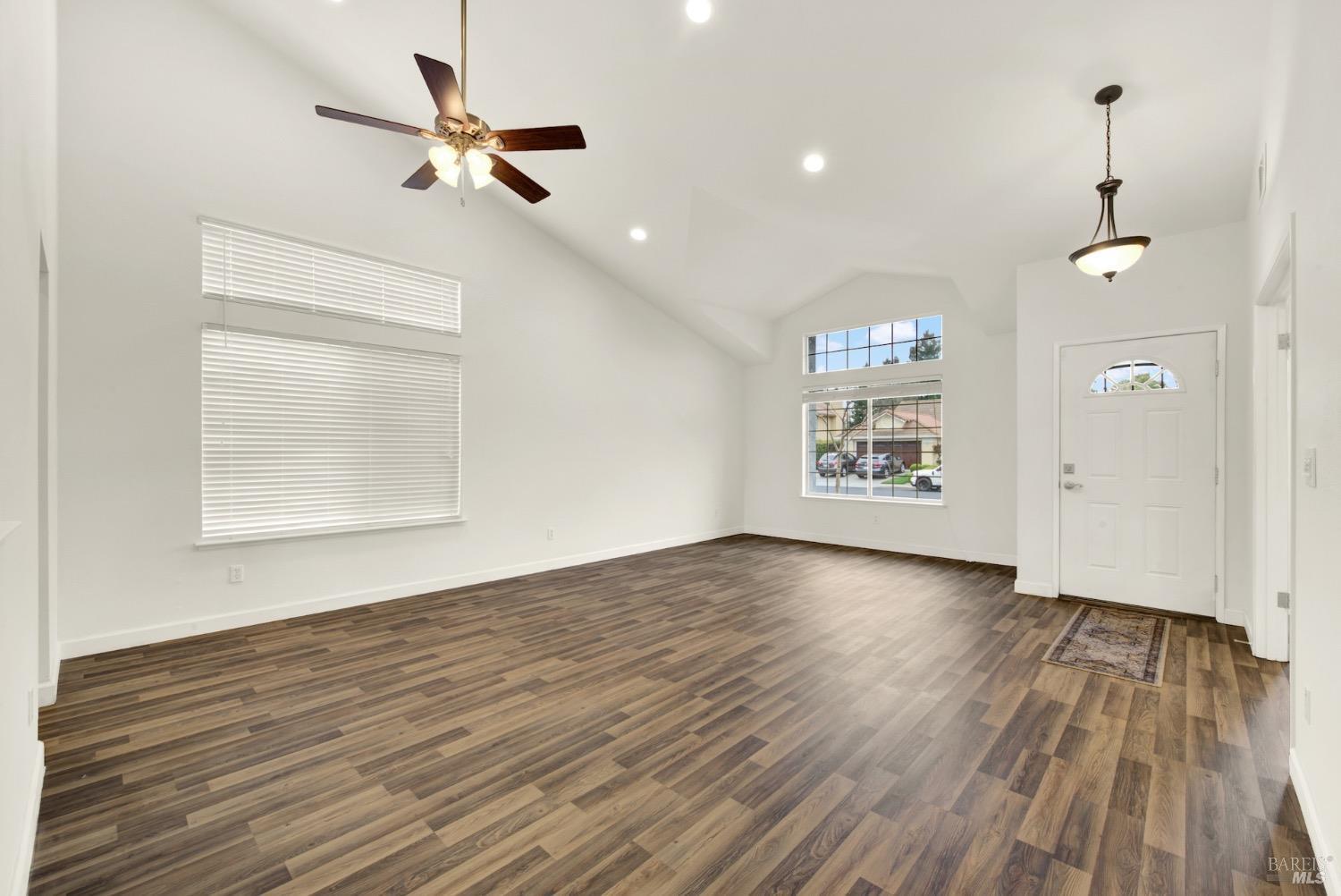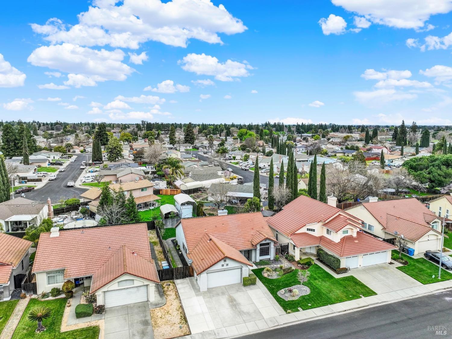 This move-in-ready 4-bed, 2-bath single story home in Vacaville's Foxwood subdivision offers 1,791 sq. ft. of living space, with soaring ceilings and bright natural light. Features include a spacious kitchen with granite countertops, recessed lighting, and new carpet in the bedrooms. Recent updates include a new hot water heater, HVAC system (5 yr), garage door & opener (2 yr), and exterior paint (6 yr). Enjoy easy-care laminate flooring in main living areas, a tile roof, and upgraded front and rear landscaping with sprinklers. The primary suite boasts a vaulted ceiling, double closets, plus an extra-large shower and granite counters in the updated primary bathroom. The garage comes with cabinetry and a workbench. The driveway is extra wide for lots of parking options. Located near parks, schools, and with easy access to I-80, this home is in the highly-rated Travis Unified School District and just 15 minutes from Travis AFB. A must-see! Pest & Roof Clearance repairs will be completed 3/1. 4th bedroom has double doors but no closet. It also makes for a great office or 3rd living area. Fruit trees in backyard for homemade lemonade!