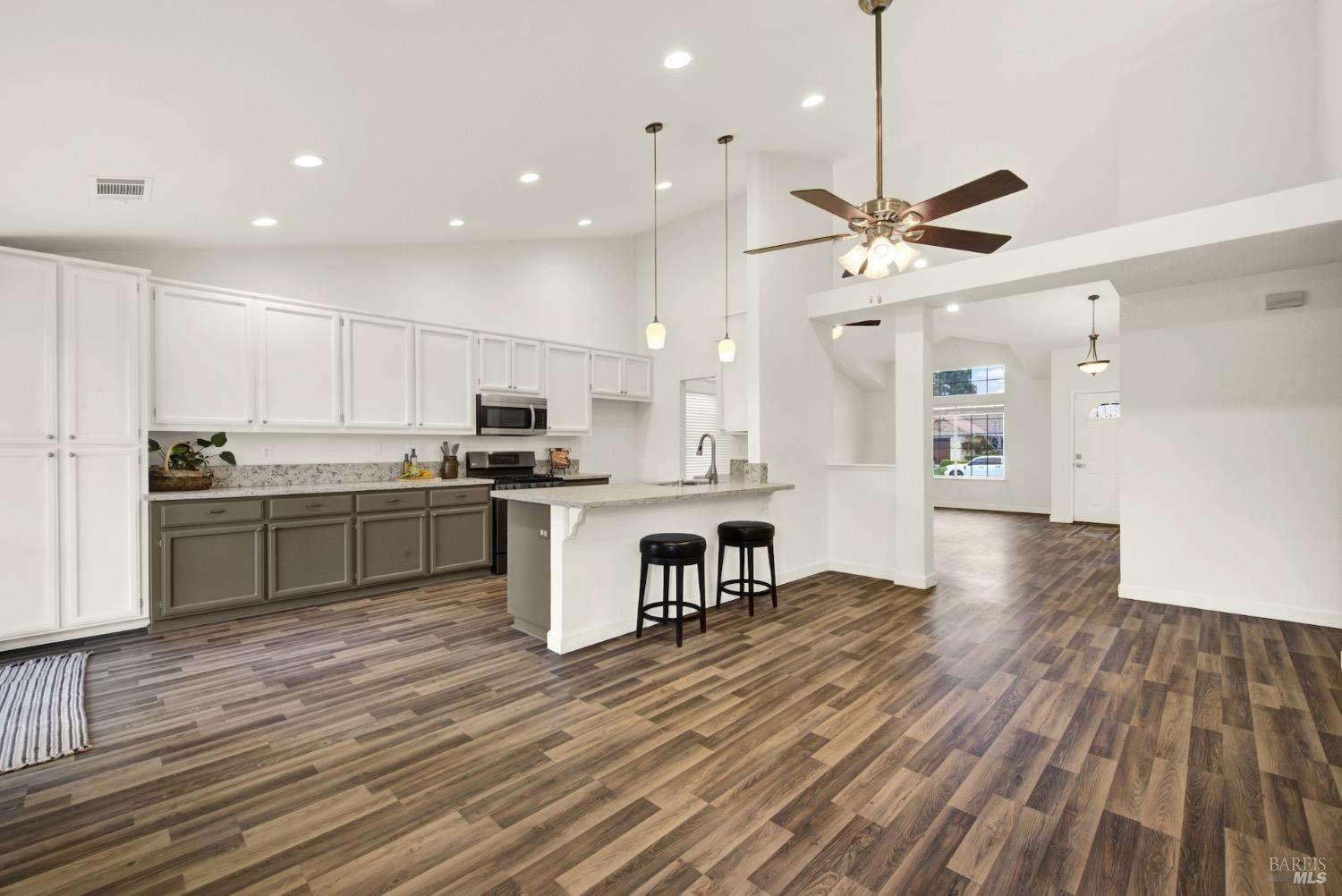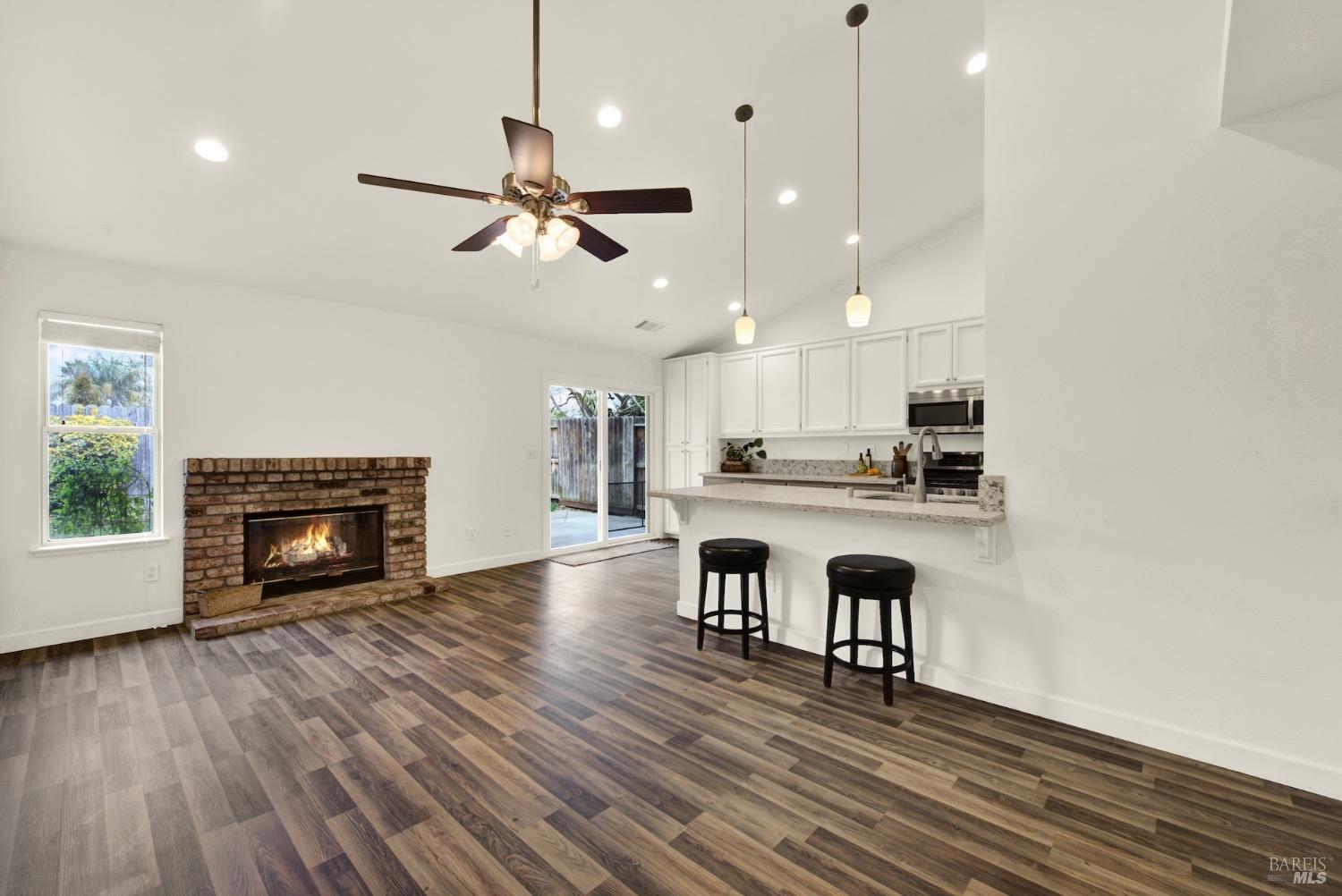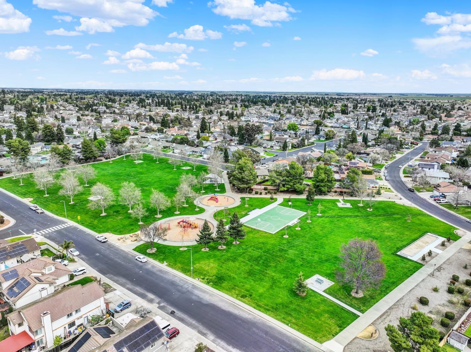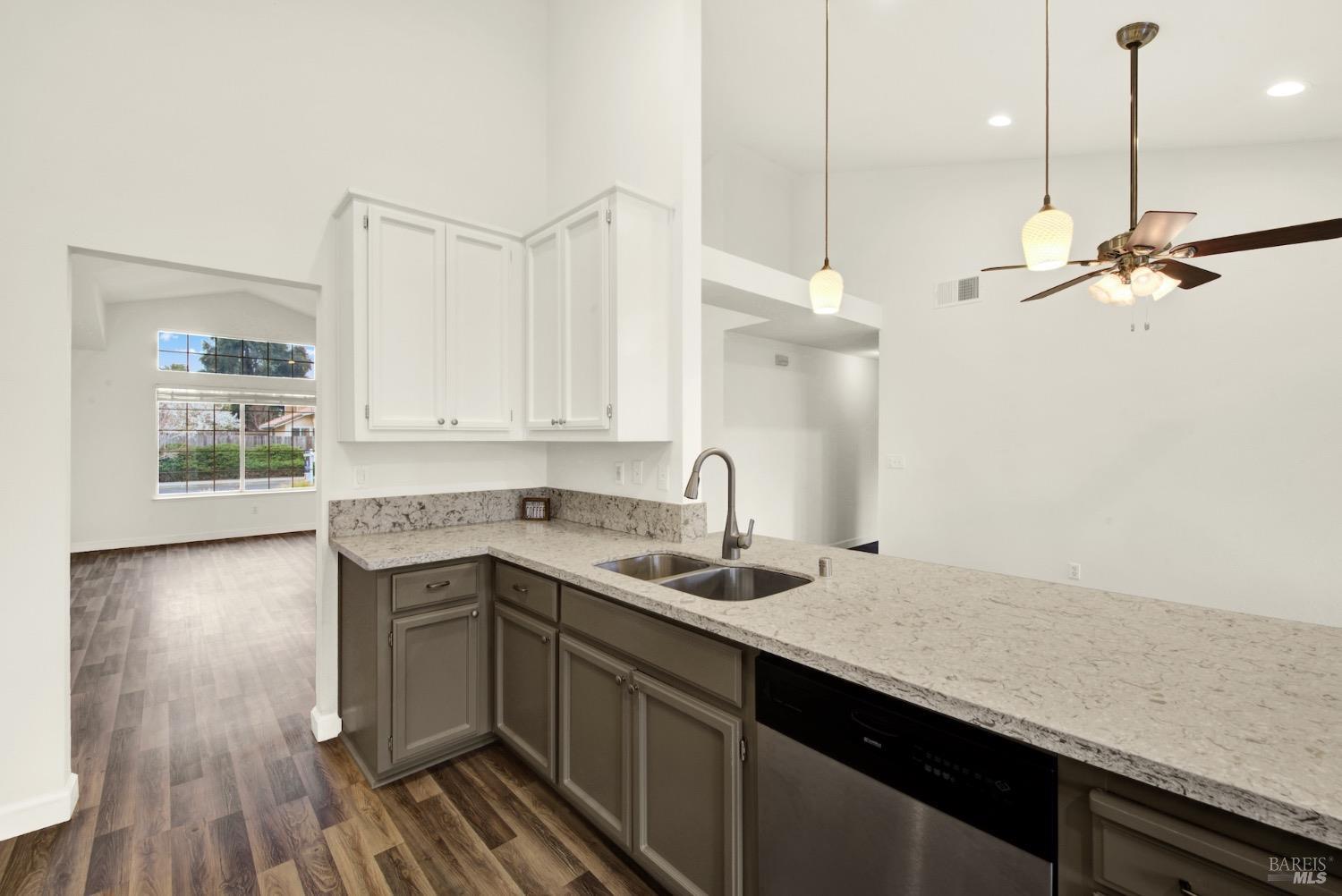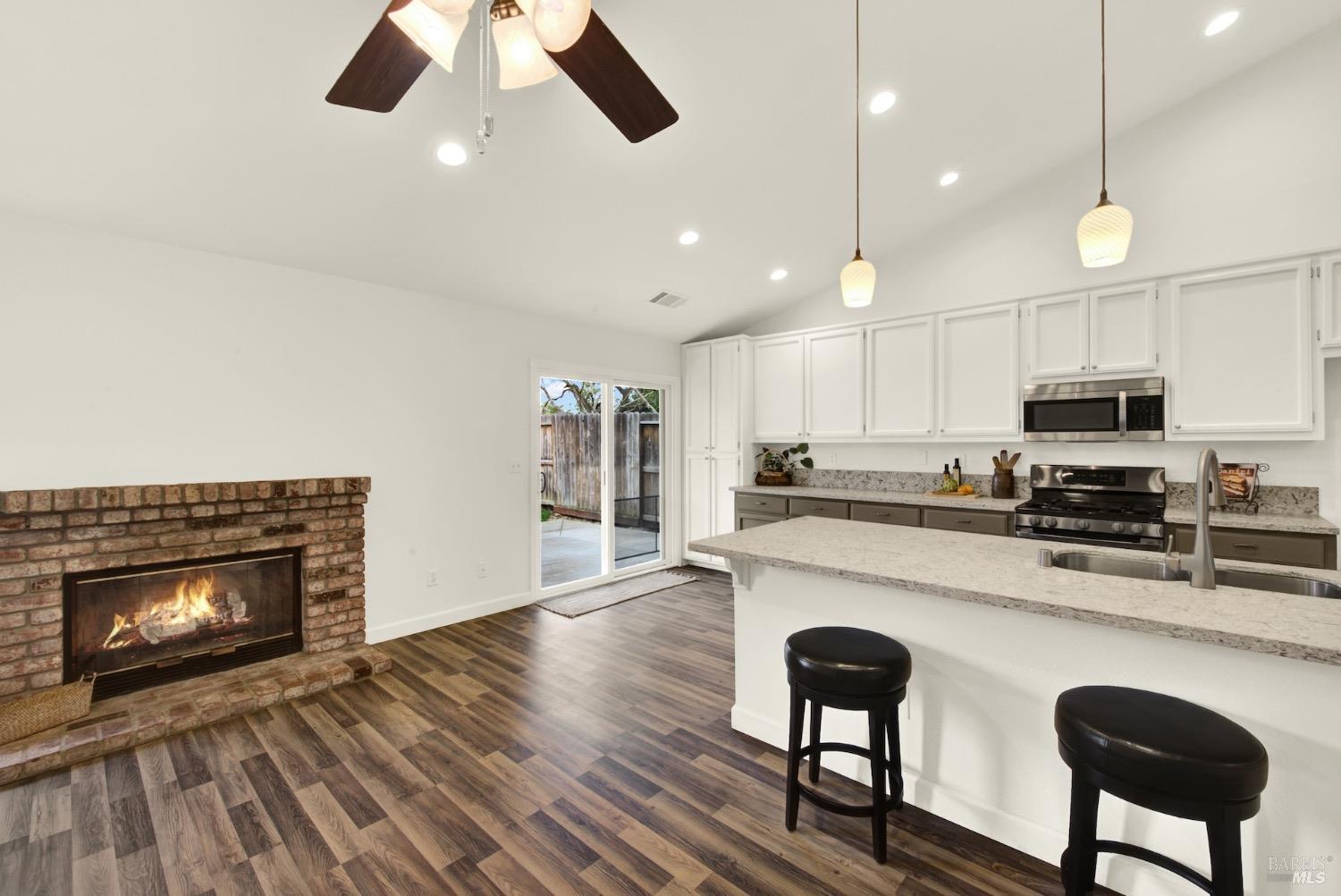 This move-in-ready 4-bed, 2-bath single story home in Vacaville's Foxwood subdivision offers 1,791 sq. ft. of living space, with soaring ceilings and bright natural light. Features include a spacious kitchen with granite countertops, recessed lighting, and new carpet in the bedrooms. Recent updates include a new hot water heater, HVAC system (5 yr), garage door & opener (2 yr), and exterior paint (6 yr). Enjoy easy-care laminate flooring in main living areas, a tile roof, and upgraded front and rear landscaping with sprinklers. The primary suite boasts a vaulted ceiling, double closets, plus an extra-large shower and granite counters in the updated primary bathroom. The garage comes with cabinetry and a workbench. The driveway is extra wide for lots of parking options. Located near parks, schools, and with easy access to I-80, this home is in the highly-rated Travis Unified School District and just 15 minutes from Travis AFB. A must-see! Pest & Roof Clearance repairs will be completed 3/1. 4th bedroom has double doors but no closet. It also makes for a great office or 3rd living area. Fruit trees in backyard for homemade lemonade!