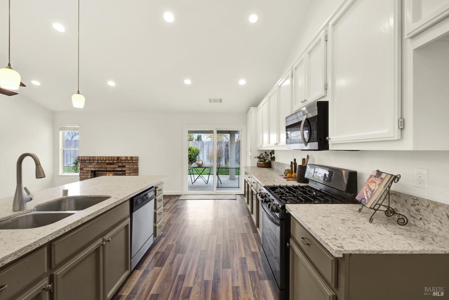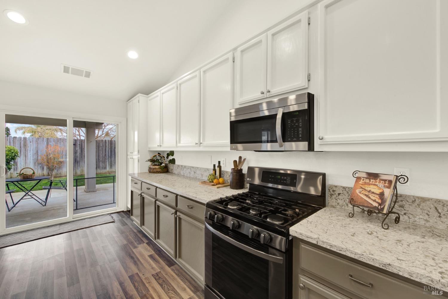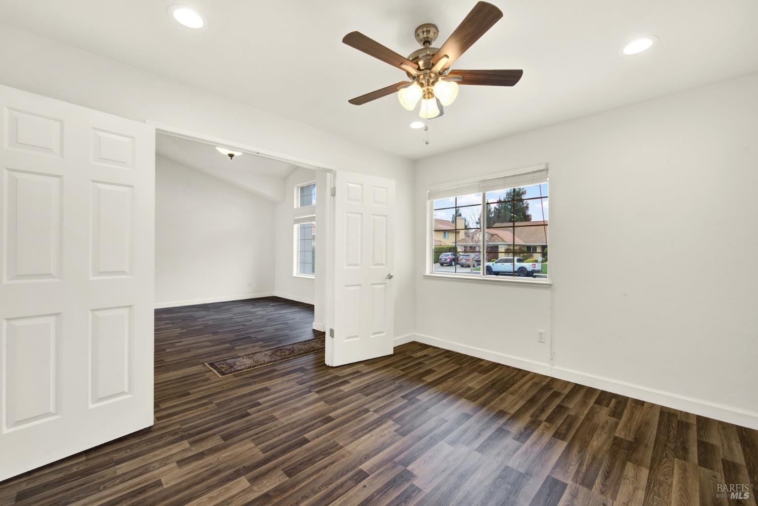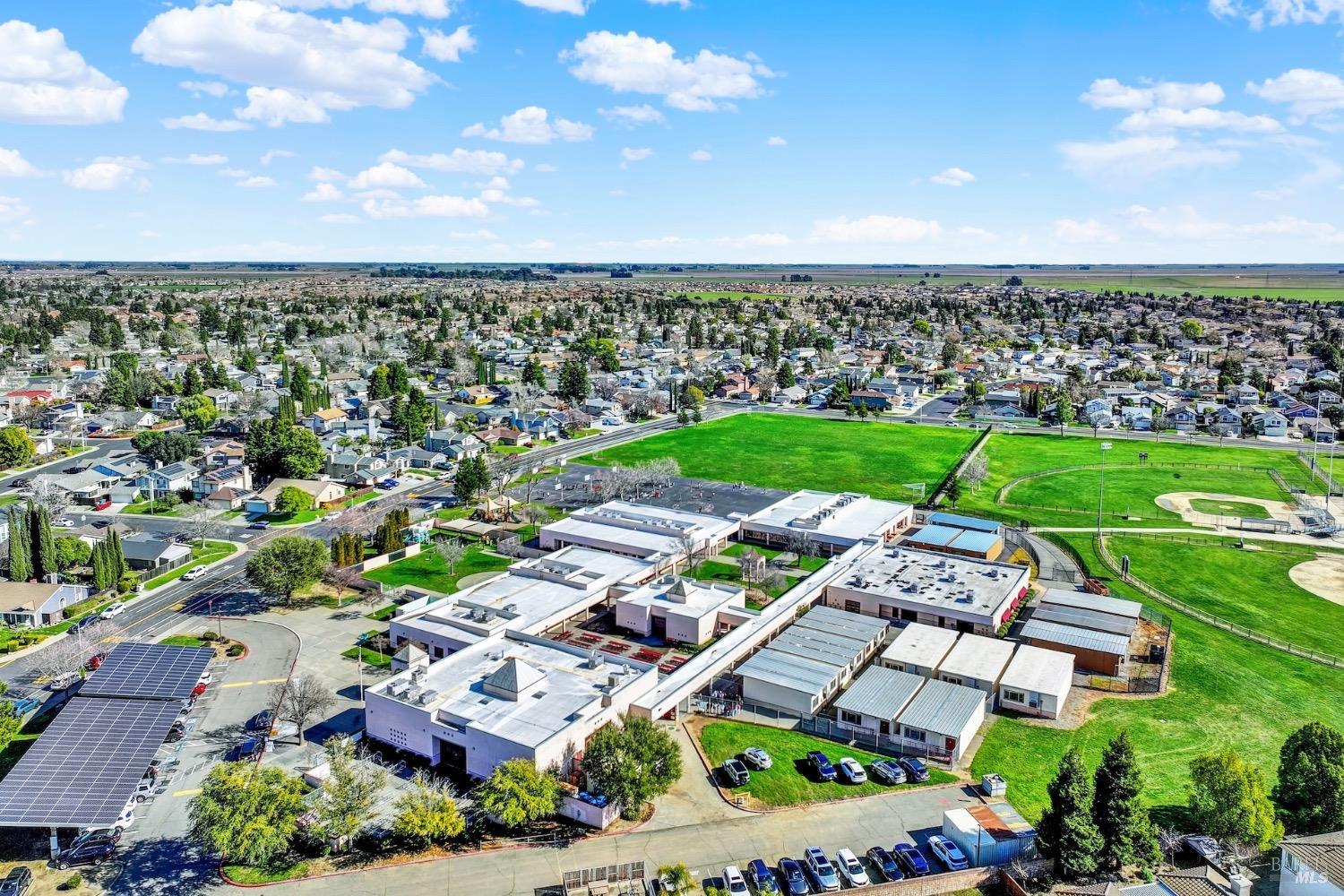 This move-in-ready 4-bed, 2-bath single story home in Vacaville's Foxwood subdivision offers 1,791 sq. ft. of living space, with soaring ceilings and bright natural light. Features include a spacious kitchen with granite countertops, recessed lighting, and new carpet in the bedrooms. Recent updates include a new hot water heater, HVAC system (5 yr), garage door & opener (2 yr), and exterior paint (6 yr). Enjoy easy-care laminate flooring in main living areas, a tile roof, and upgraded front and rear landscaping with sprinklers. The primary suite boasts a vaulted ceiling, double closets, plus an extra-large shower and granite counters in the updated primary bathroom. The garage comes with cabinetry and a workbench. The driveway is extra wide for lots of parking options. Located near parks, schools, and with easy access to I-80, this home is in the highly-rated Travis Unified School District and just 15 minutes from Travis AFB. A must-see! Pest & Roof Clearance repairs will be completed 3/1. 4th bedroom has double doors but no closet. It also makes for a great office or 3rd living area. Fruit trees in backyard for homemade lemonade!