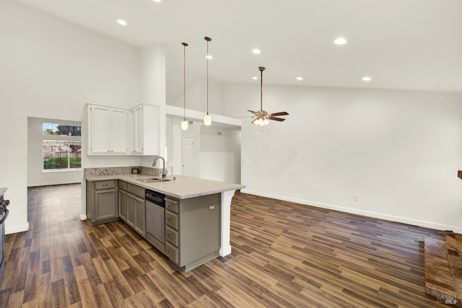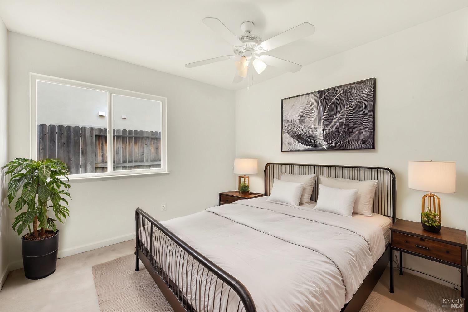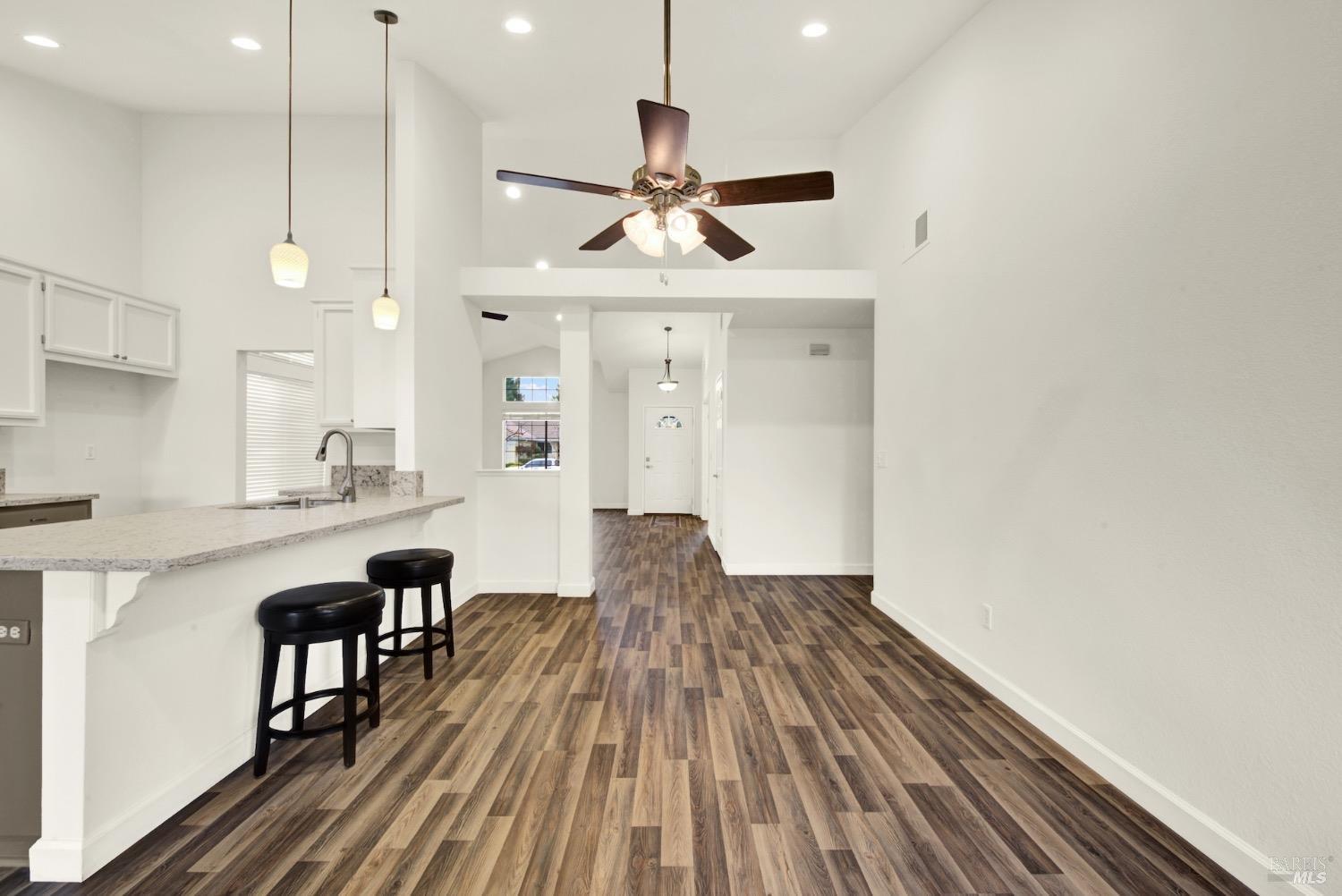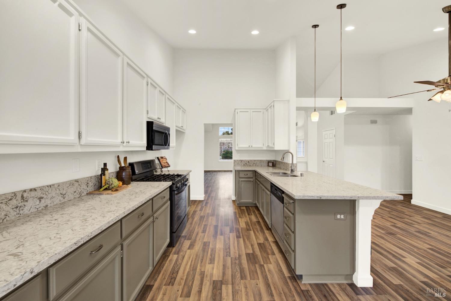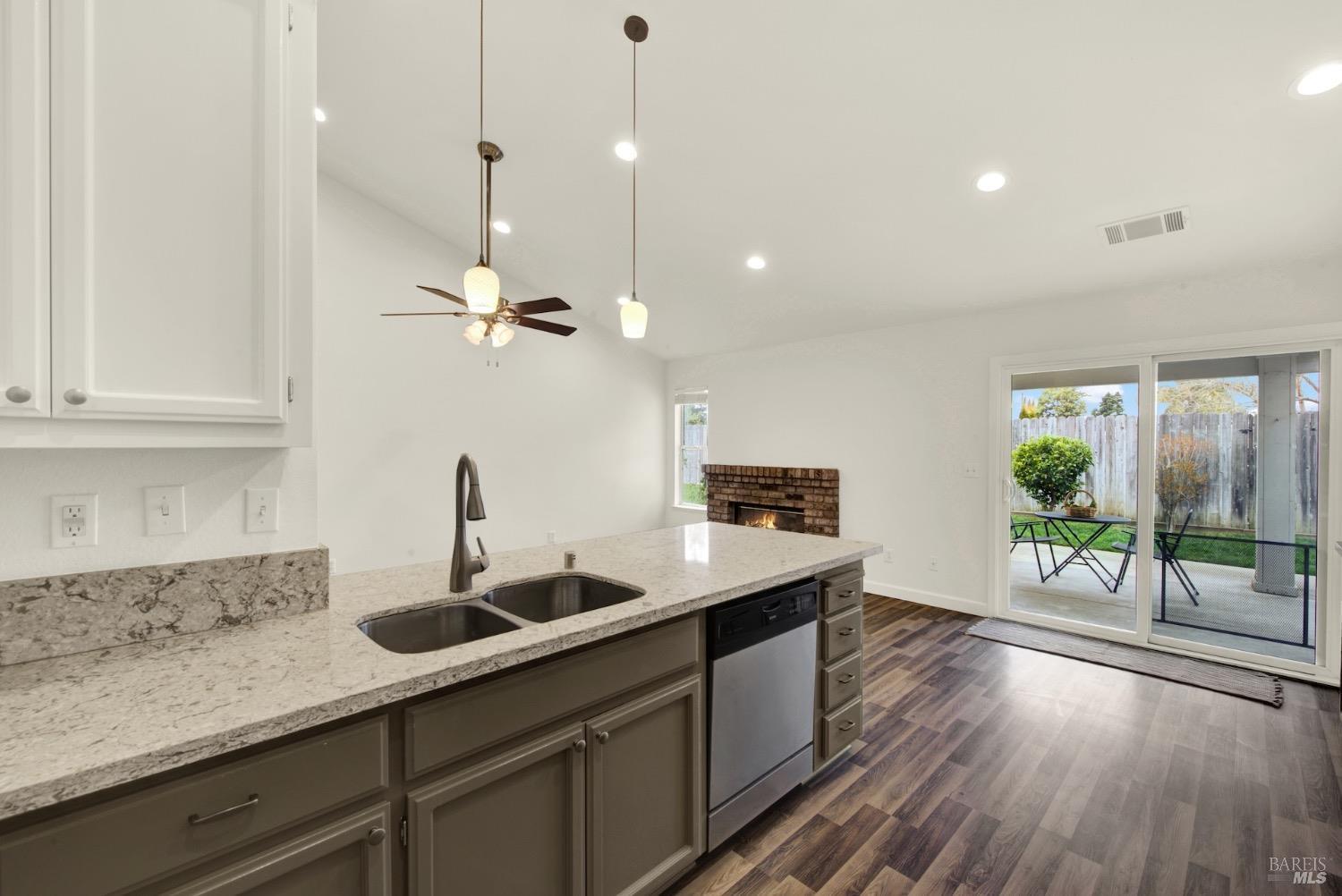 This move-in-ready 4-bed, 2-bath single story home in Vacaville's Foxwood subdivision offers 1,791 sq. ft. of living space, with soaring ceilings and bright natural light. Features include a spacious kitchen with granite countertops, recessed lighting, and new carpet in the bedrooms. Recent updates include a new hot water heater, HVAC system (5 yr), garage door & opener (2 yr), and exterior paint (6 yr). Enjoy easy-care laminate flooring in main living areas, a tile roof, and upgraded front and rear landscaping with sprinklers. The primary suite boasts a vaulted ceiling, double closets, plus an extra-large shower and granite counters in the updated primary bathroom. The garage comes with cabinetry and a workbench. The driveway is extra wide for lots of parking options. Located near parks, schools, and with easy access to I-80, this home is in the highly-rated Travis Unified School District and just 15 minutes from Travis AFB. A must-see! Pest & Roof Clearance repairs will be completed 3/1. 4th bedroom has double doors but no closet. It also makes for a great office or 3rd living area. Fruit trees in backyard for homemade lemonade!