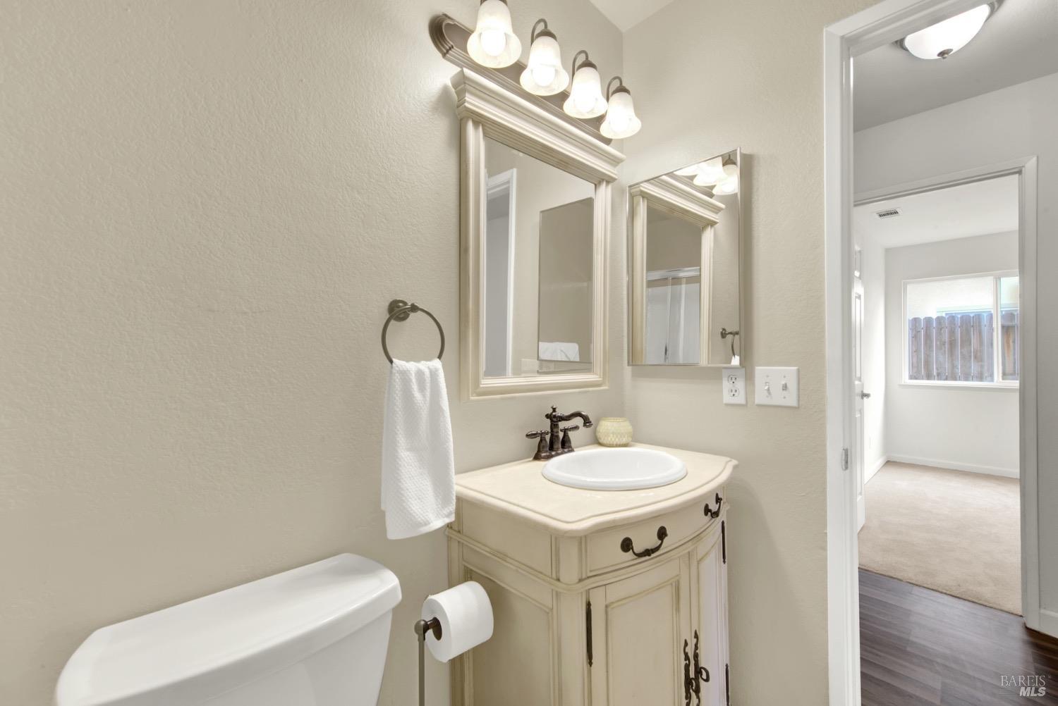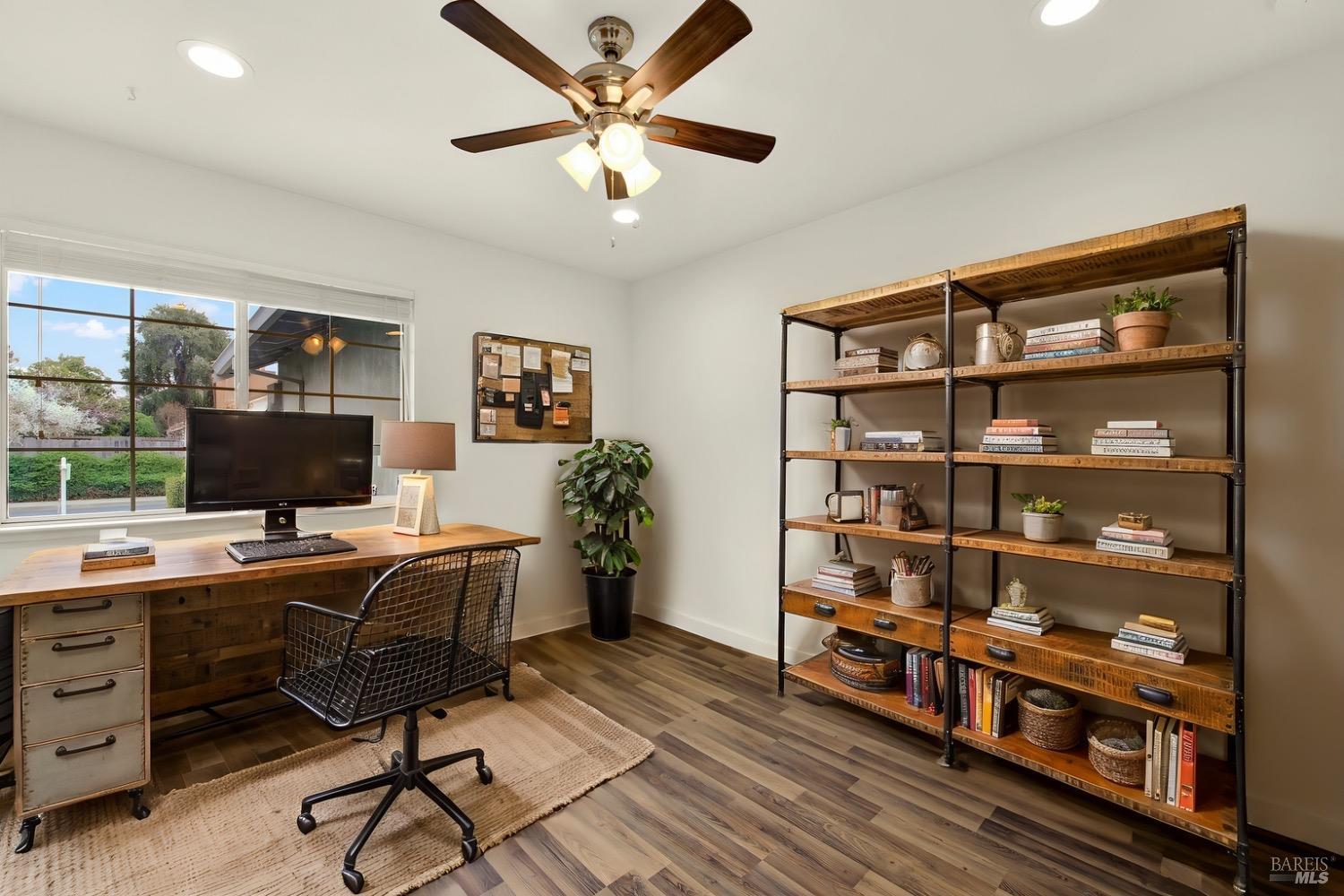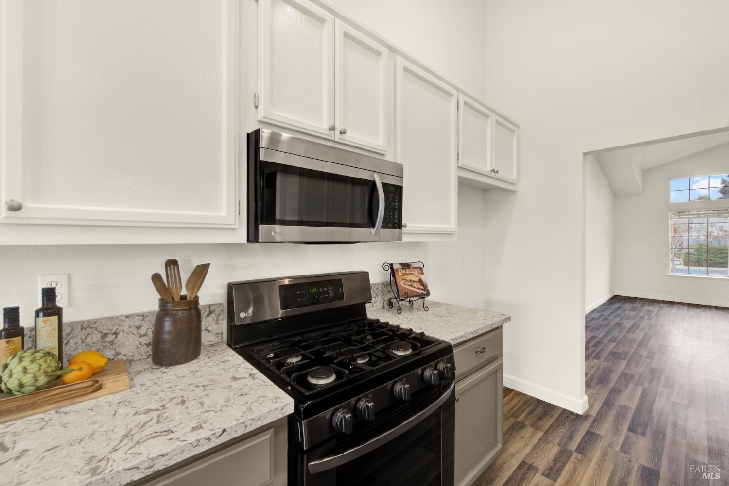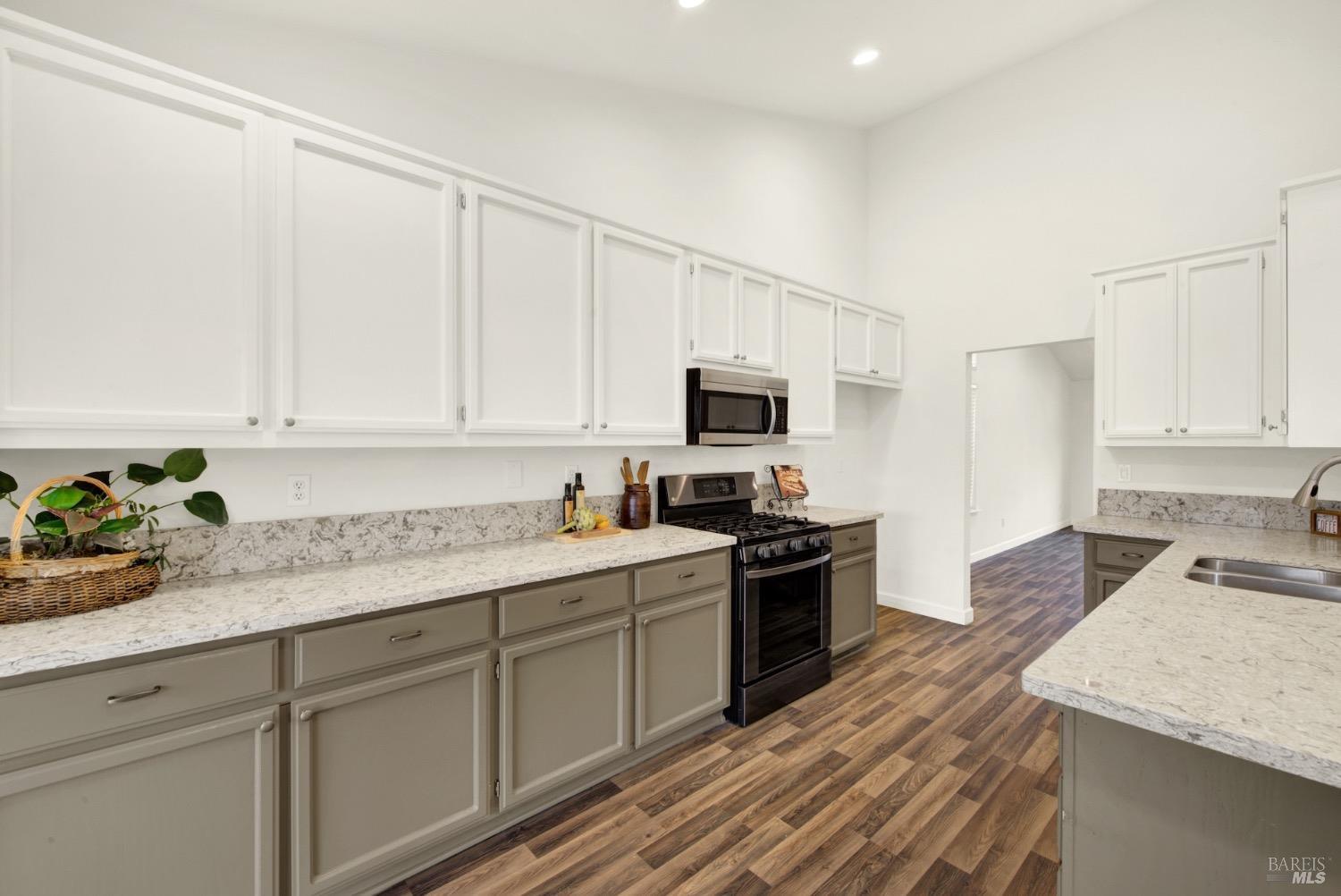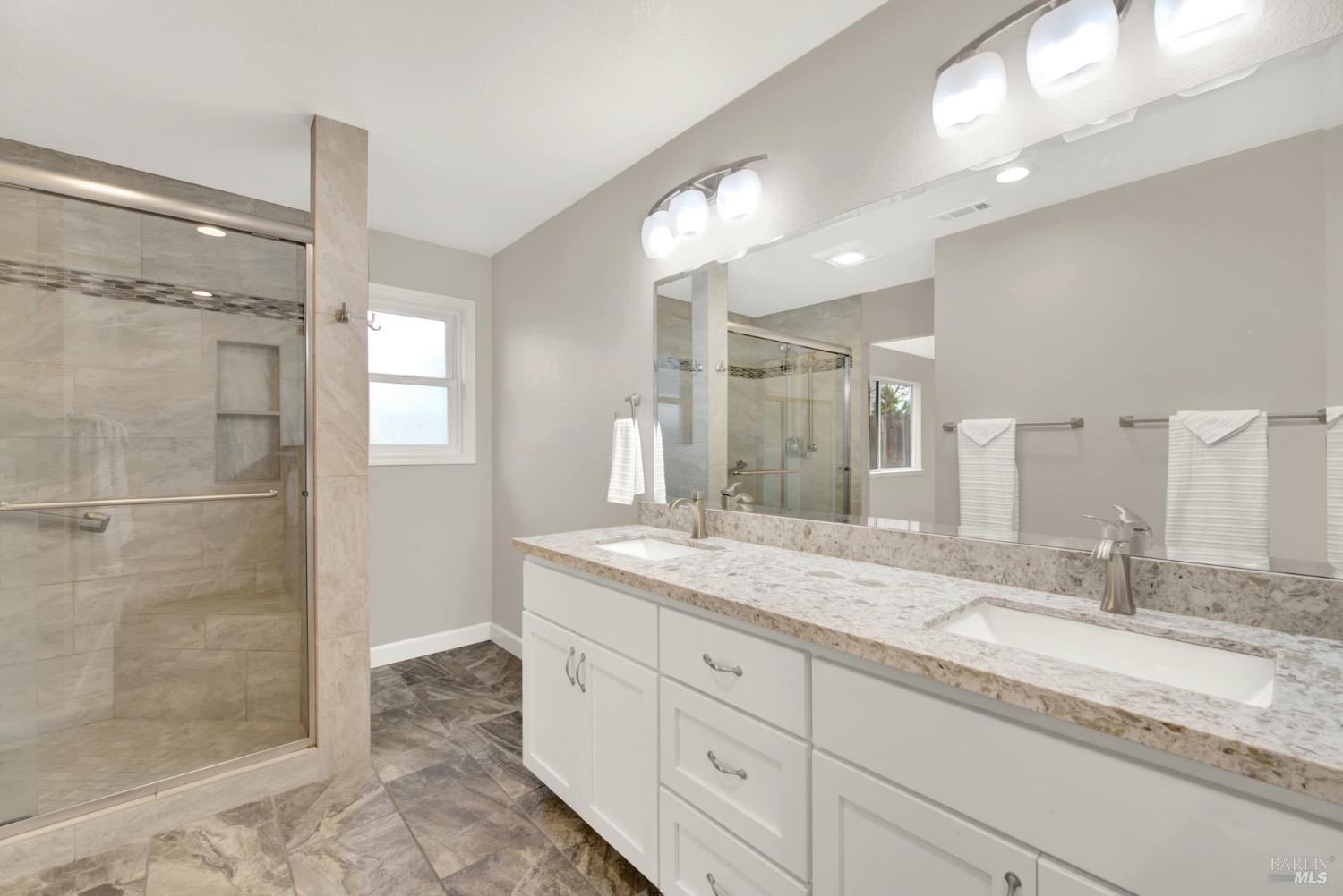 This move-in-ready 4-bed, 2-bath single story home in Vacaville's Foxwood subdivision offers 1,791 sq. ft. of living space, with soaring ceilings and bright natural light. Features include a spacious kitchen with granite countertops, recessed lighting, and new carpet in the bedrooms. Recent updates include a new hot water heater, HVAC system (5 yr), garage door & opener (2 yr), and exterior paint (6 yr). Enjoy easy-care laminate flooring in main living areas, a tile roof, and upgraded front and rear landscaping with sprinklers. The primary suite boasts a vaulted ceiling, double closets, plus an extra-large shower and granite counters in the updated primary bathroom. The garage comes with cabinetry and a workbench. The driveway is extra wide for lots of parking options. Located near parks, schools, and with easy access to I-80, this home is in the highly-rated Travis Unified School District and just 15 minutes from Travis AFB. A must-see! Pest & Roof Clearance repairs will be completed 3/1. 4th bedroom has double doors but no closet. It also makes for a great office or 3rd living area. Fruit trees in backyard for homemade lemonade!